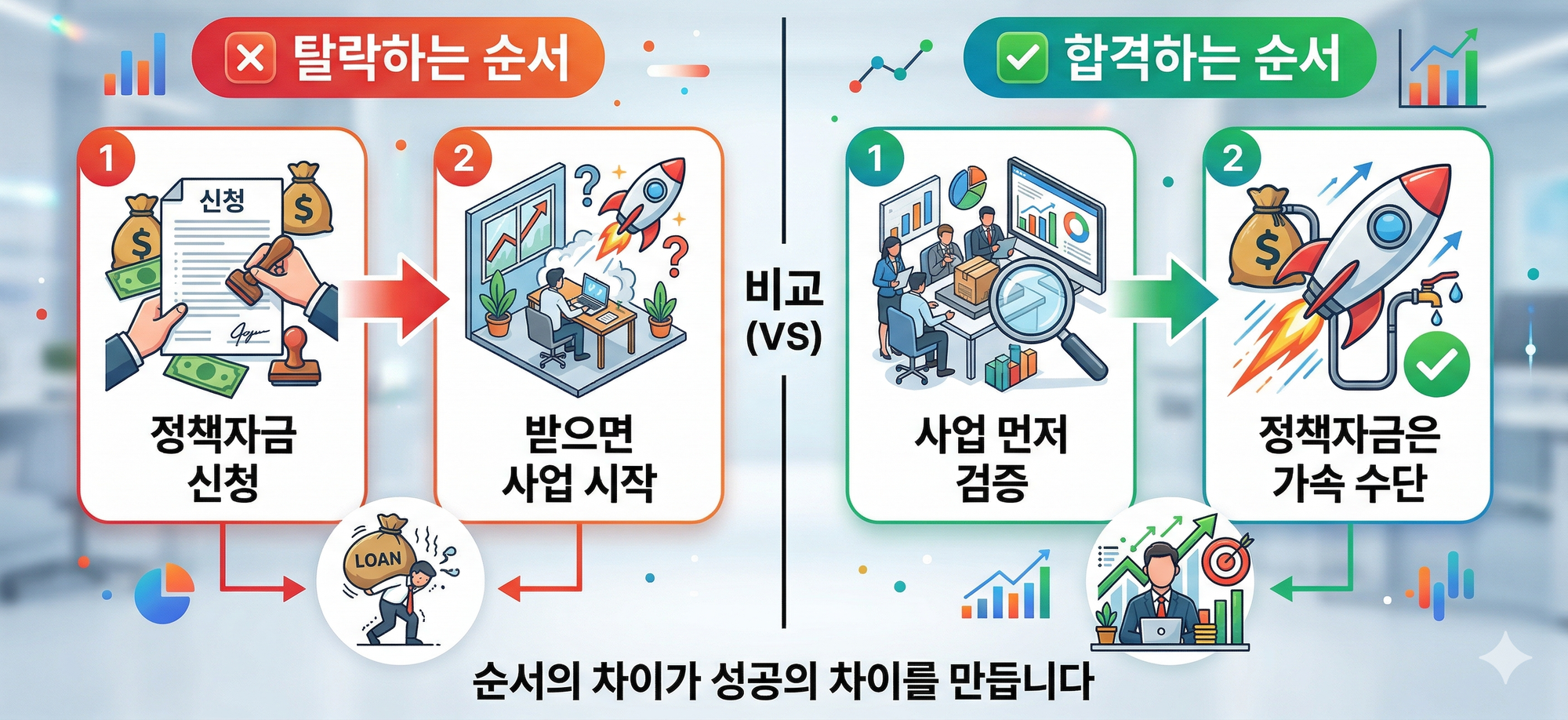 사업화 자금을 목표로 준비하는 게 아니라, 사업 자체를 제대로 준비하다 보면 정책자금은 자연스럽게 따라옵니다.