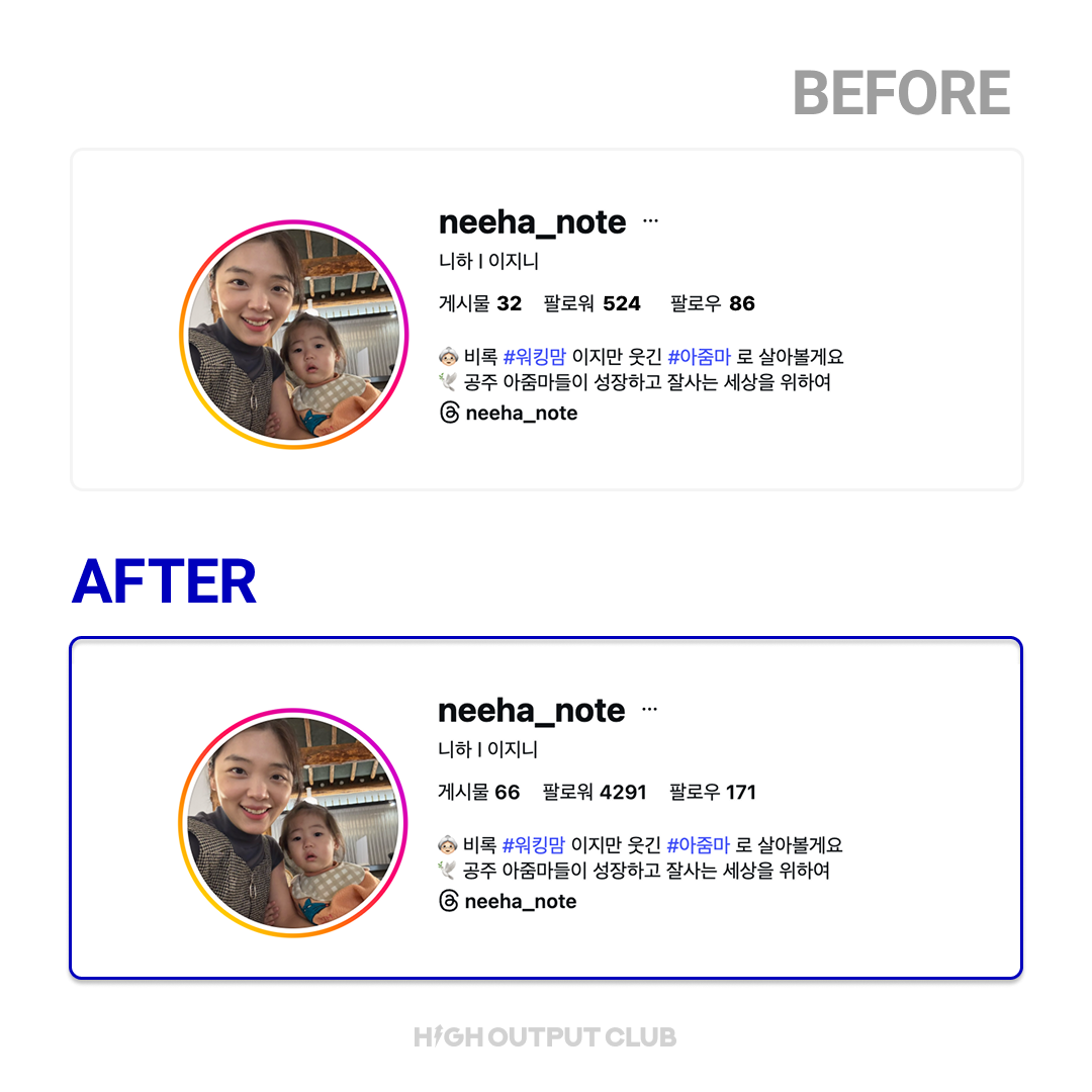 - 프로필을 보는 3초 안에 '이 계정이 나를 위한 곳인지' 판단할 수 있어야 합니다.