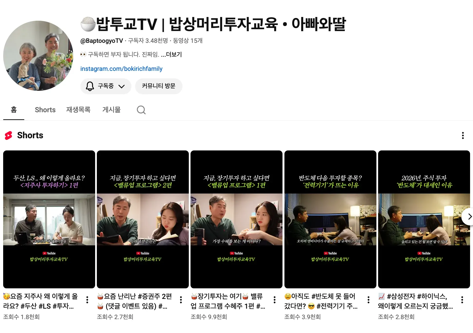 - 유튜브 채널(밥상머리투자교육)과 인스타그램을 연계해서 플랫폼 간 유입을 유도했습니다.