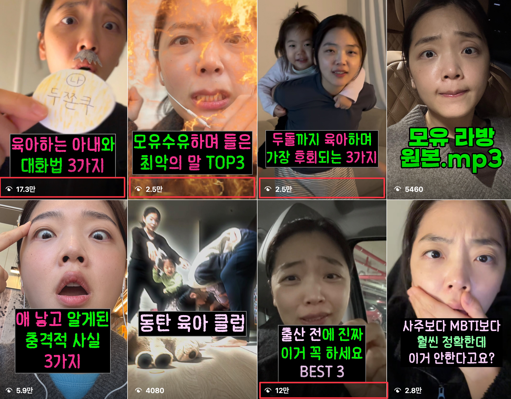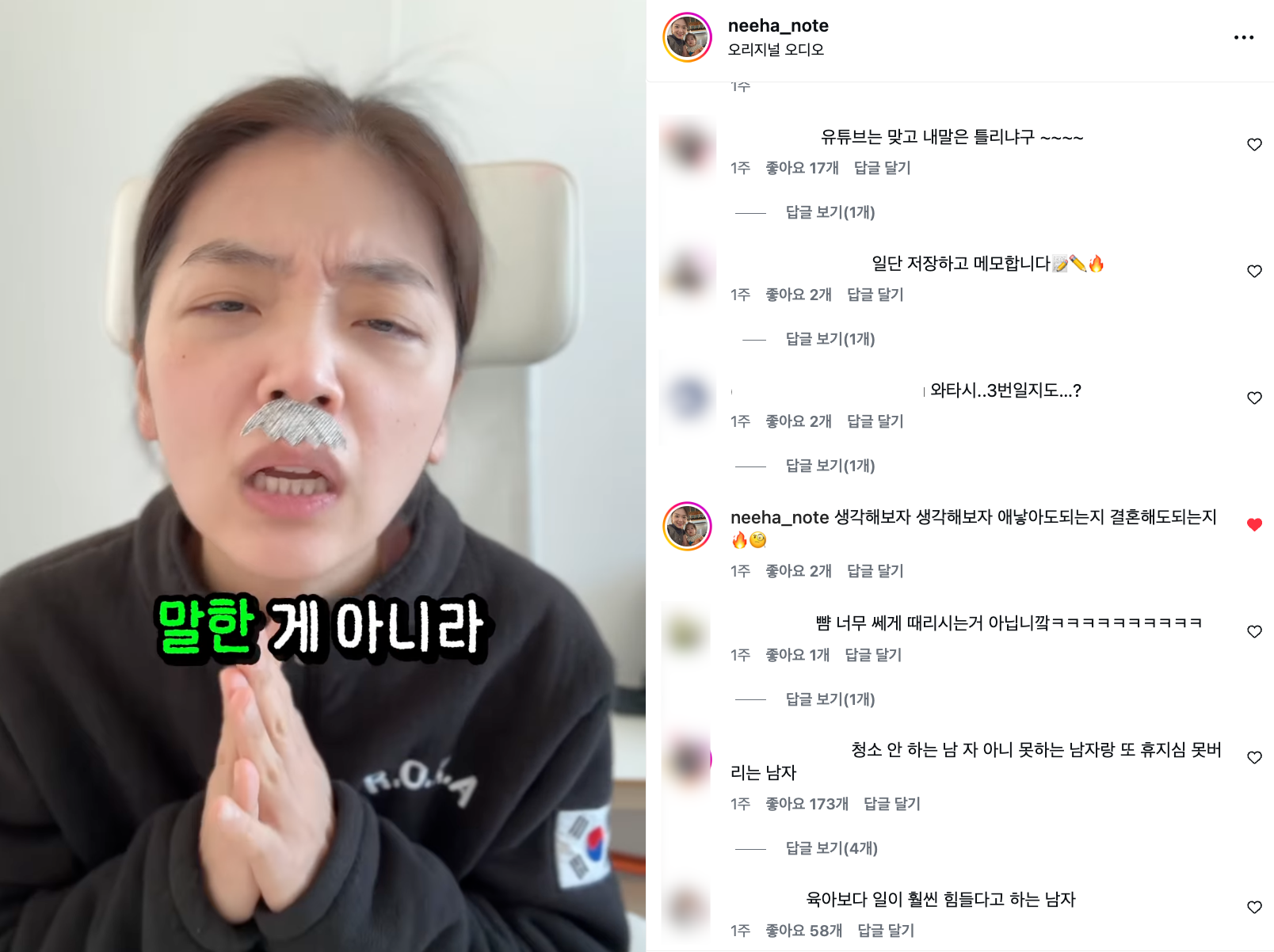 - 니하님의 콘텐츠 주제를 보면 타겟이 명확해요. 육아 중인 엄마들이 남편에게 느끼는 미묘한 감정을 유머러스하게 풀어냅니다.