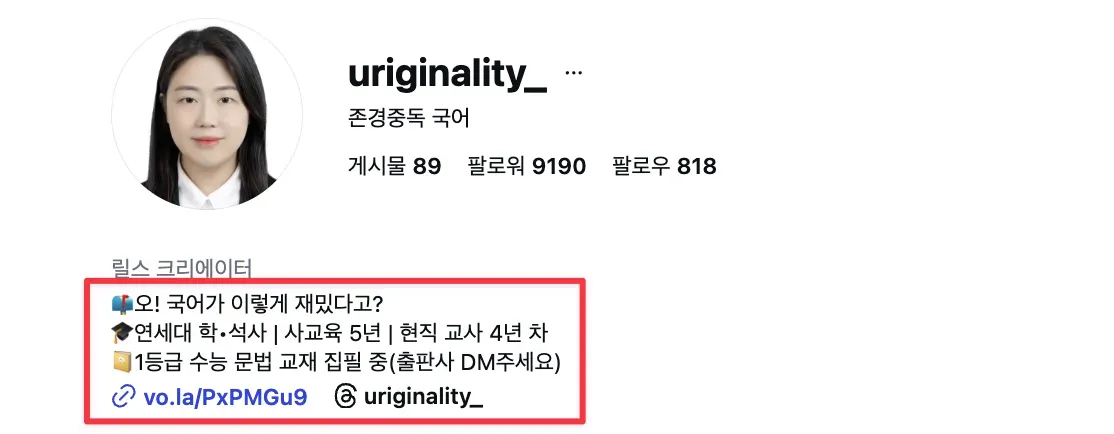 ✓ 프로필 바이오 세팅하기 : 내가 누구인지, 왜 이 주제를 말할 자격이 있는지 프로필에 명확히 적어두세요.