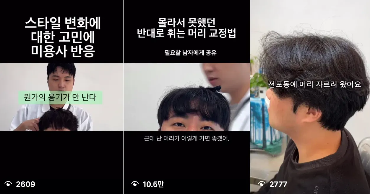 - "힘 없는 머리, 왁스부터 바르지 마세요" 같은 훅으로 시작하는 하우투 릴스가 대표적이에요. 드라이기 사용법, 스프레이 쓰는 법 등 집에서 바로 따라 할 수 있는 남성 헤어 팁을 다룹니다.