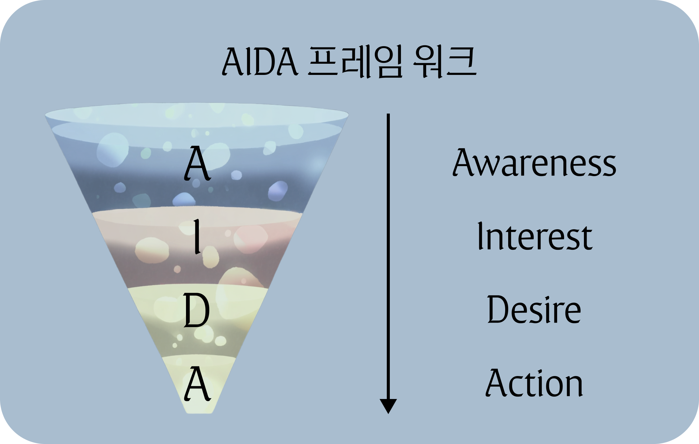 ↳ Attention ➔ Interest ➔ Desire ➔ (다시) Interest ➔ (다시) Desire ➔ Action