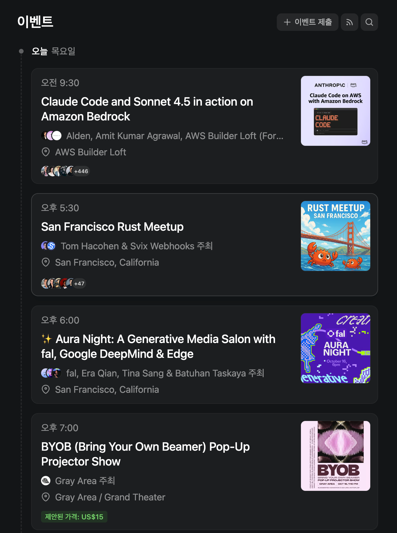 그래서 저는 두 사이트를 통해 최대한 많은 일정에 모임을 나가기로 결정합니다.