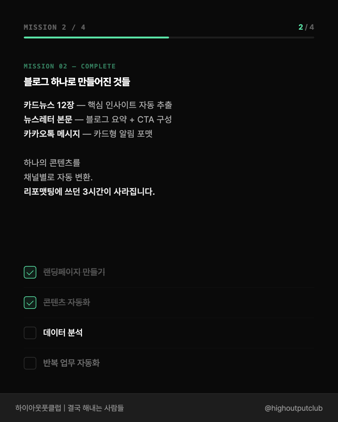콘텐츠를 만드는 건 자동화했는데, 그 콘텐츠가 잘 되고 있는지 확인하는 건 여전히 수동이었습니다.