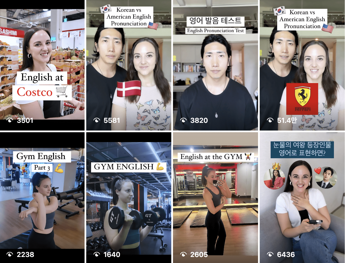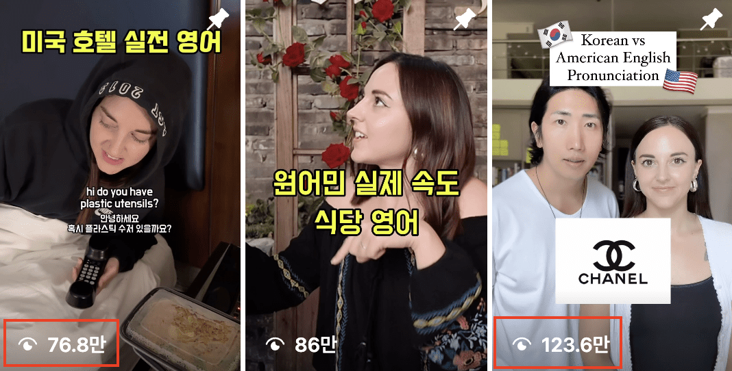 그래서 원어민과 한국어 사용자의 발음 비교 콘텐츠가 실제로 100만 조회수가 넘었습니다.