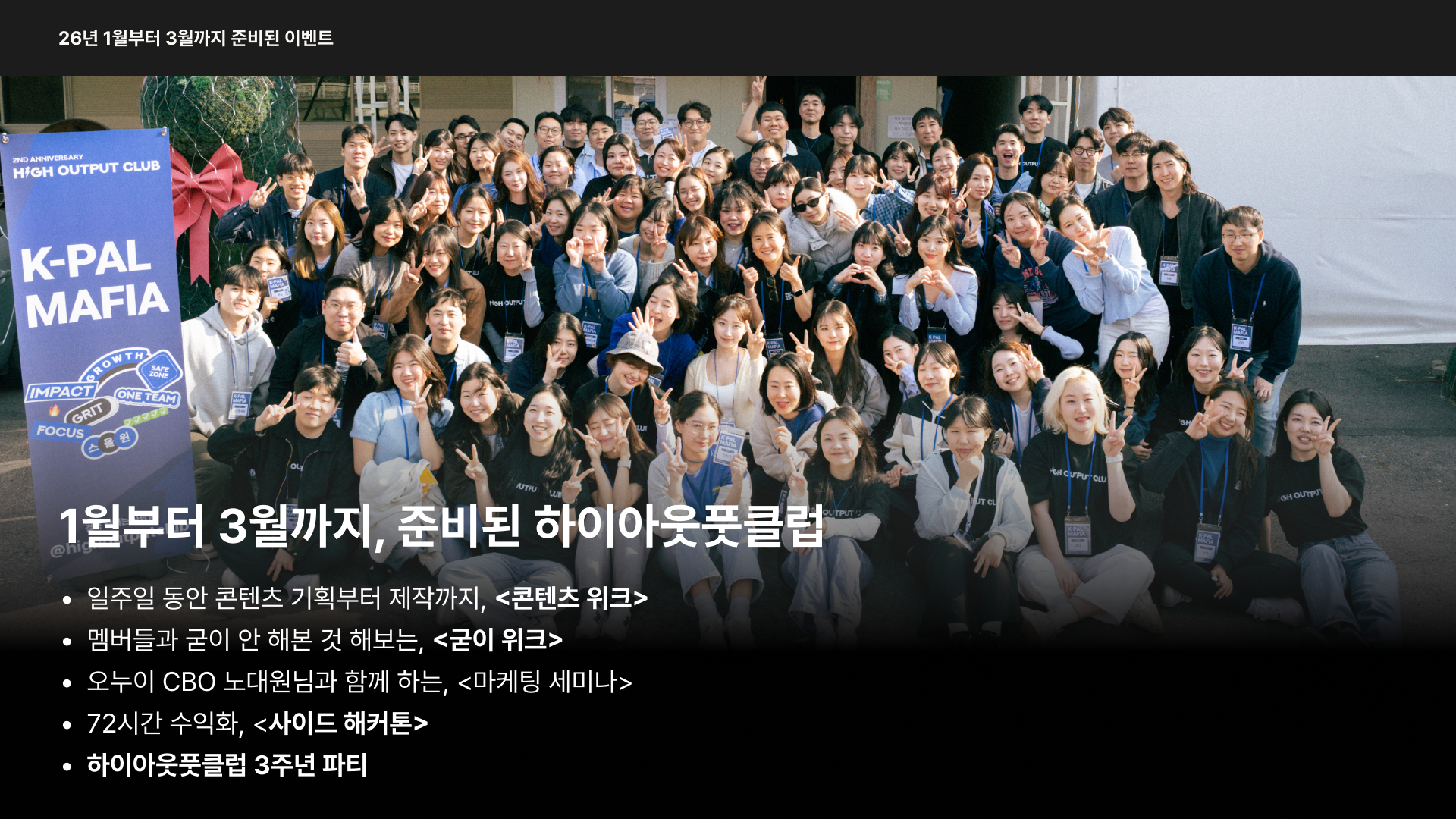 하이아웃풋클럽의 2026년 목표는 단 하나였습니다.