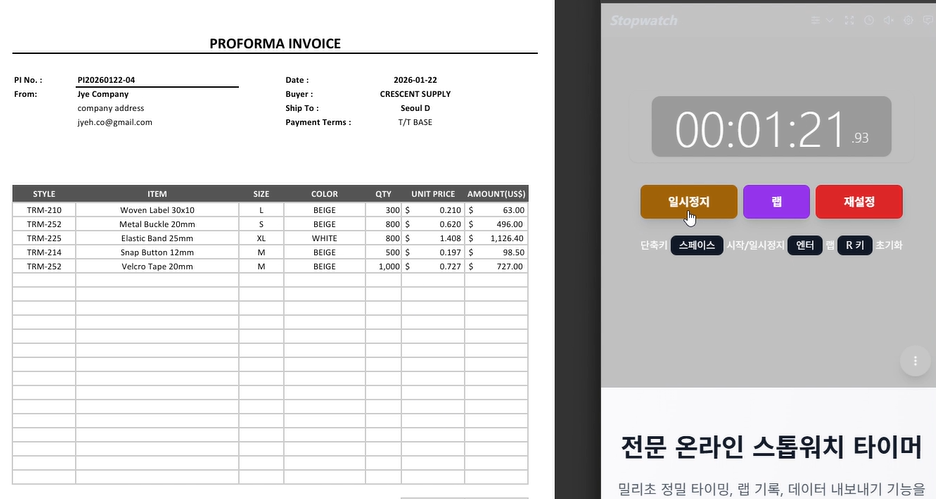 - 그 내역으로 PI(PROFORMA INVOICE)와 PO(PURCHASE ORDER)를 만든다.
