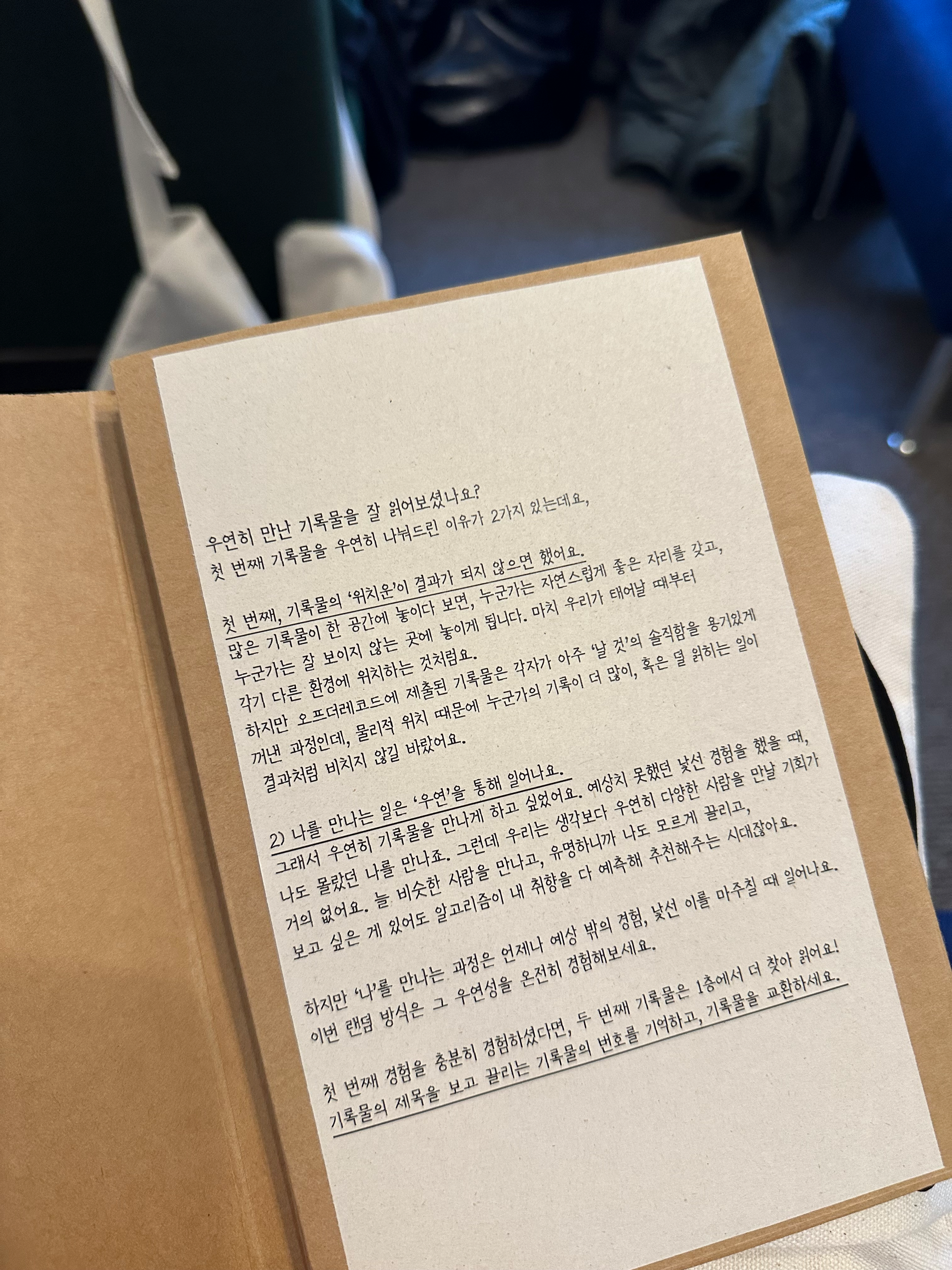 - 관람객들의 기록물도 일부러 ‘전시용’처럼 정리하지 않는다