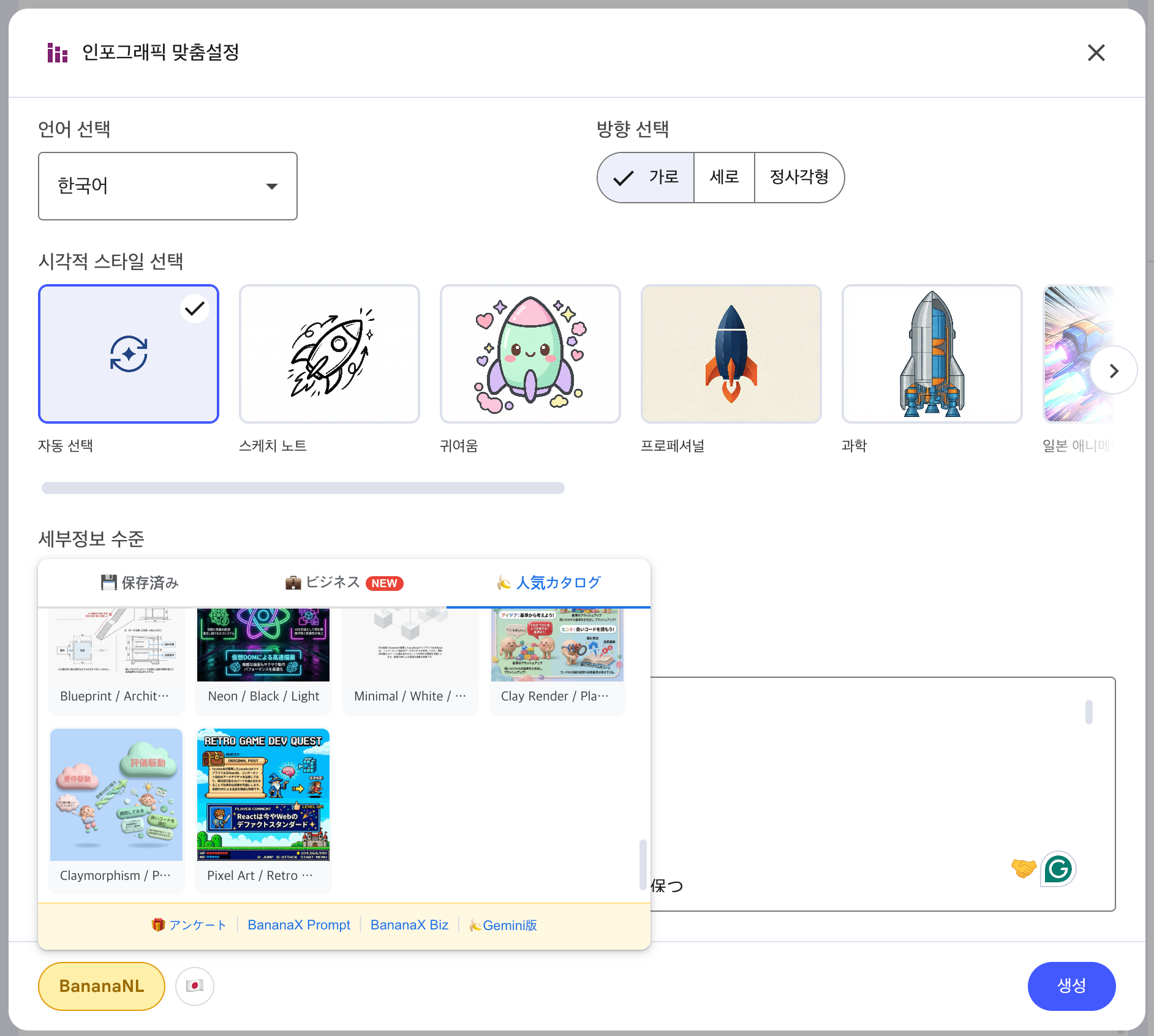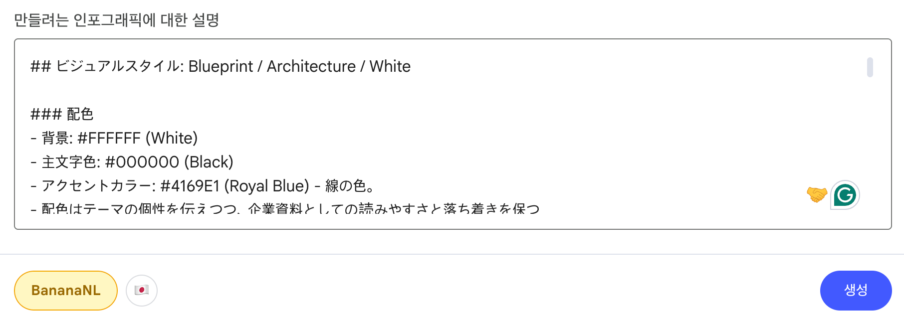 사용 방법은 간단하다. Chrome 확장 프로그램에서 'BananaNL'을 설치하면 아래와 같이 인포그래픽 생성 좌측 하단에 버튼이 생긴다.