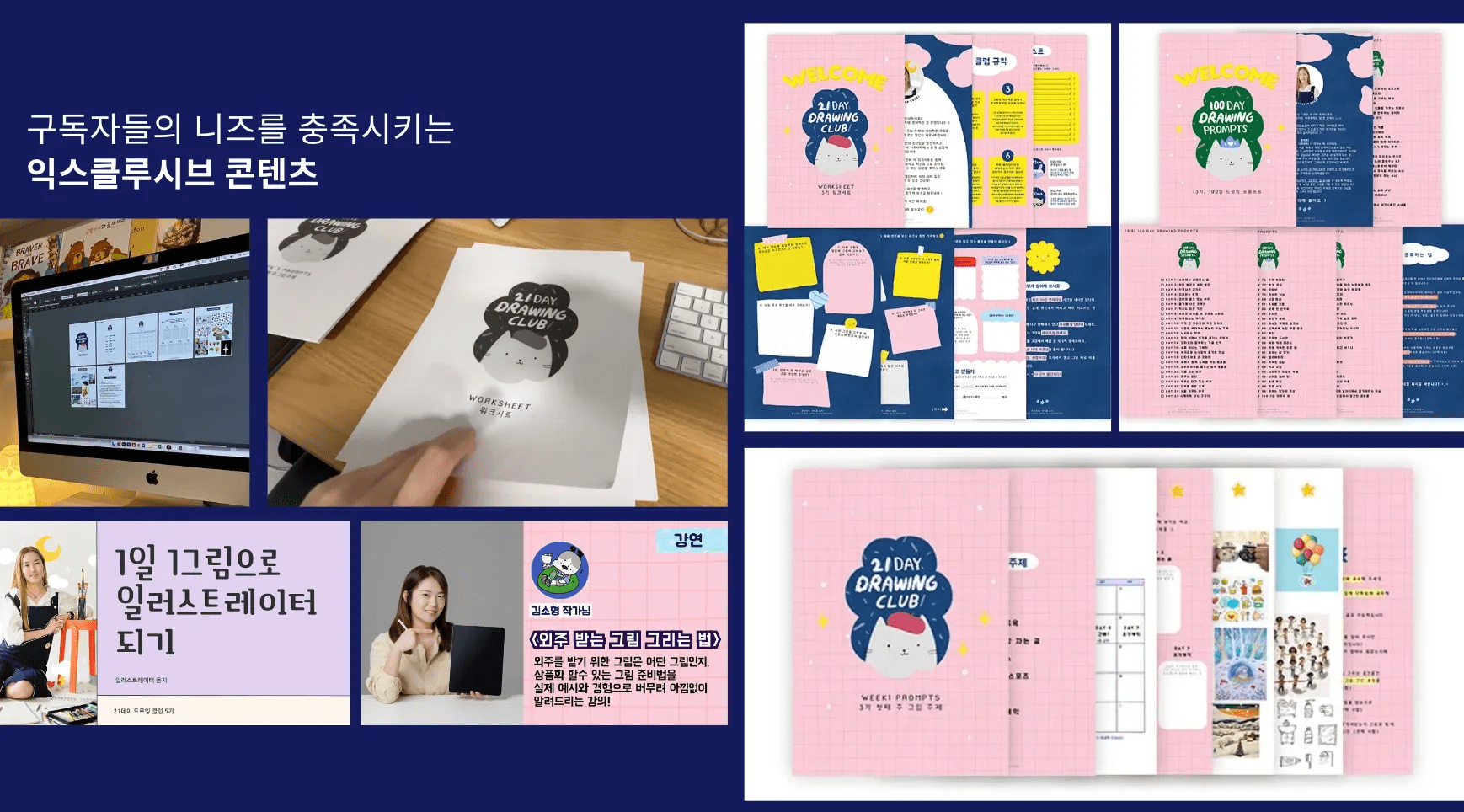 더욱 놀라운 건 광고 한 푼 들이지 않고도 매회 200-350명 멤버가 모집되는 <21데이 드로잉 클럽>을 안정적으로 운영하게 된 점이죠.