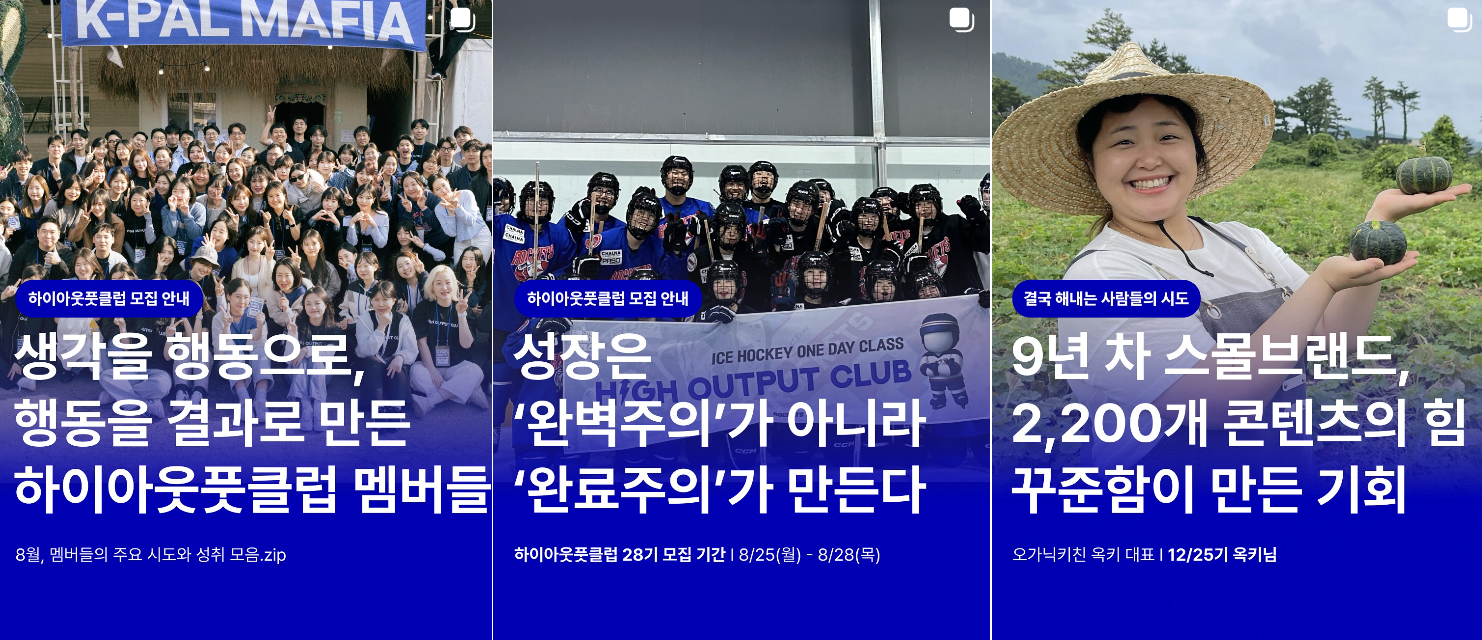 그때 나에게 확신을 던져준 것이 하이아웃풋클럽의 동료들이다. 내가 하고 있는 일에 대한 피드백을 받고, 응원을 받으며 더 앞으로 나아갈 힘을 얻었다.