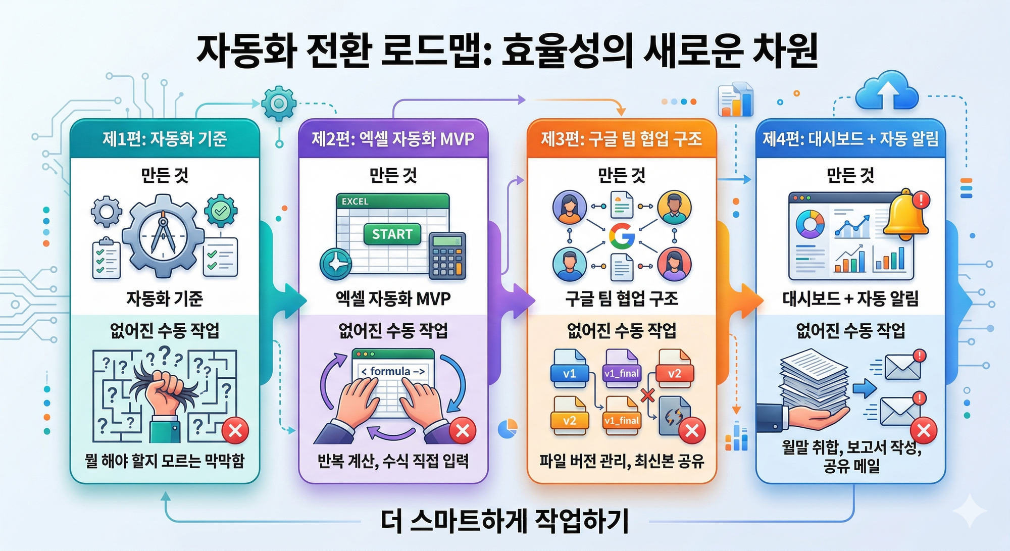 처음에 "자동화하고 싶다"고 했을 때 시도하기가 막막했던 이유는 자동화 도구나 함수나 개발 언어부터 배우려고 했기 때문이었던 것 같다.