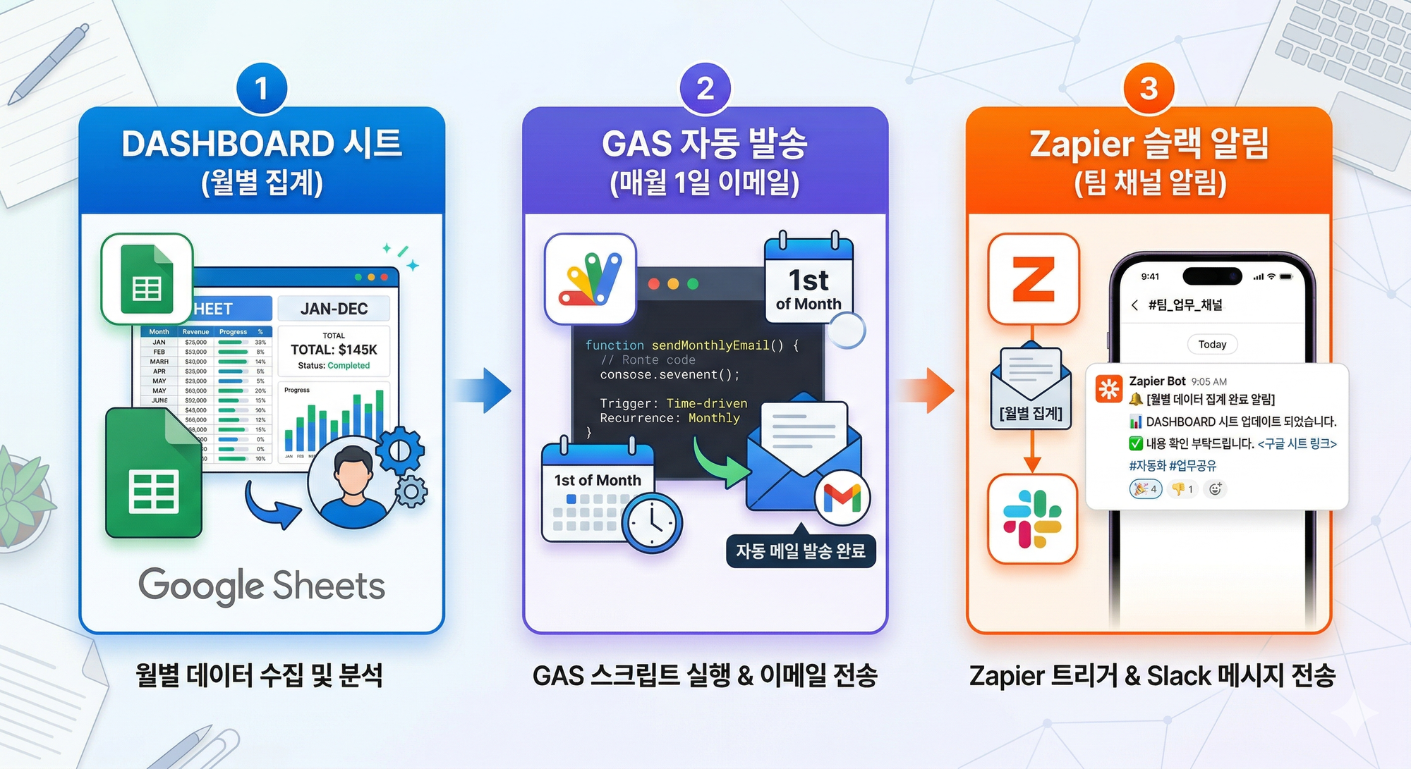 대시보드 시트를 새로 만들고, GAS와 Zapier를 연결하는 것만 하면 된다.