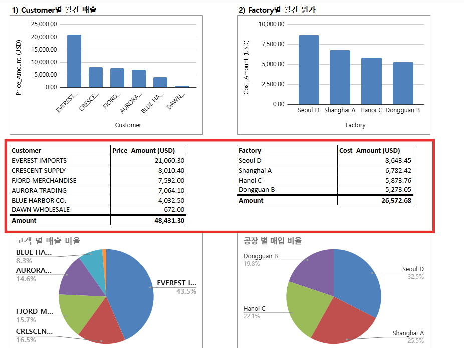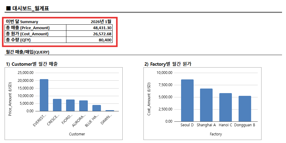 블록 2&3 — Customer/Factory별 월간 매출/원가 (QUERY)
