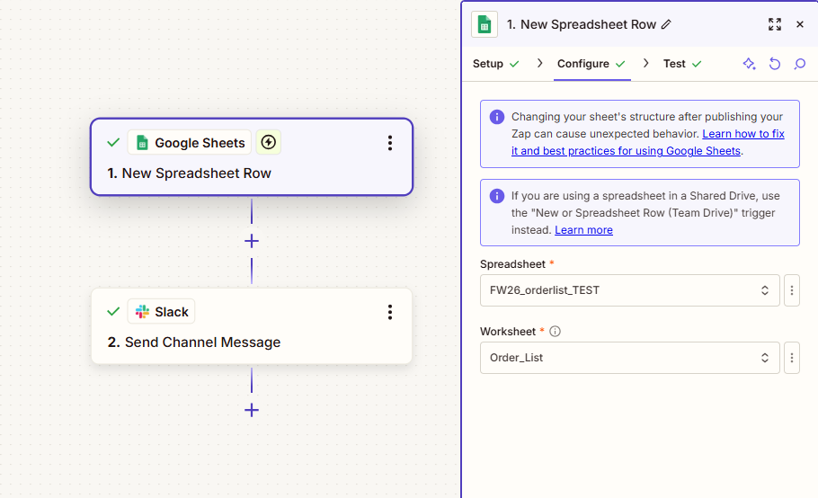 시나리오 — Order_List 새 행 추가 → 슬랙 알림