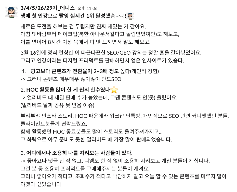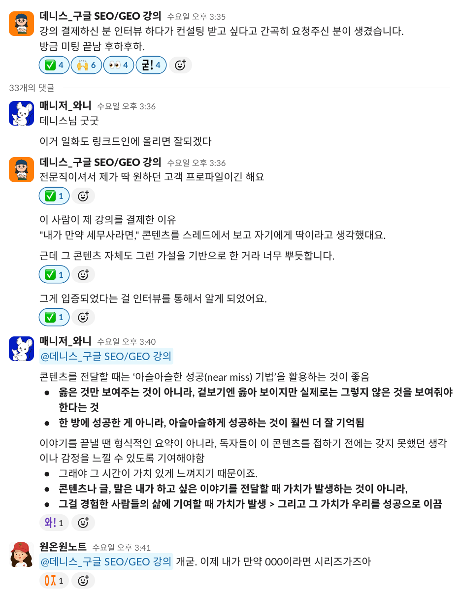 프로그램 시작 전에는 저 스스로를 '마케터와 전문직에게 SEO/GEO 정보를 파는 사람'이라고 생각했습니다.