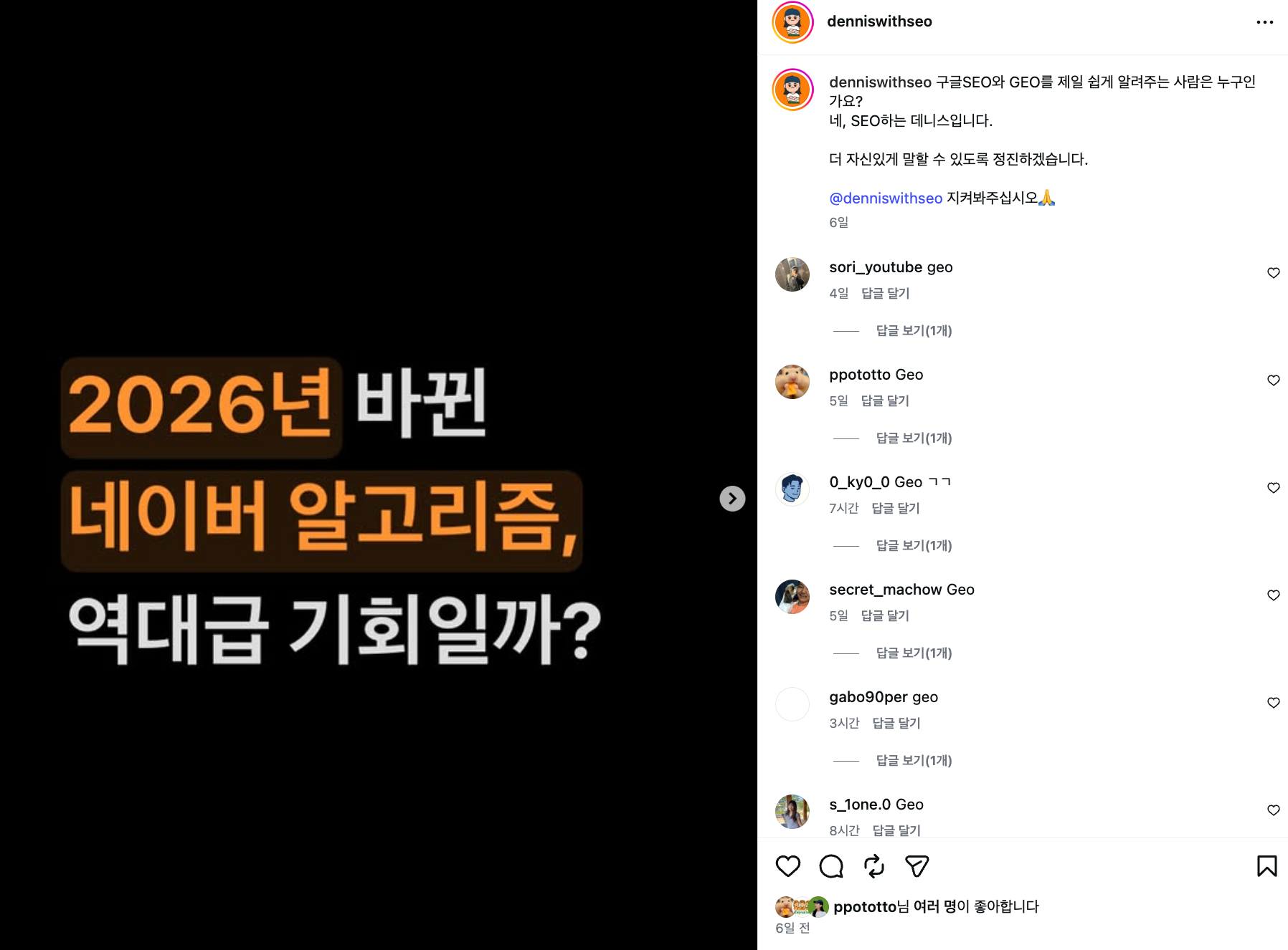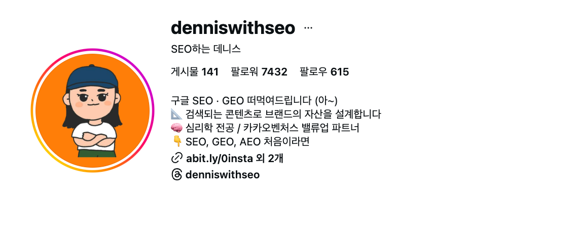 그렇게 시작한 게 현재 제 계정 @denniswithseo 였습니다.
