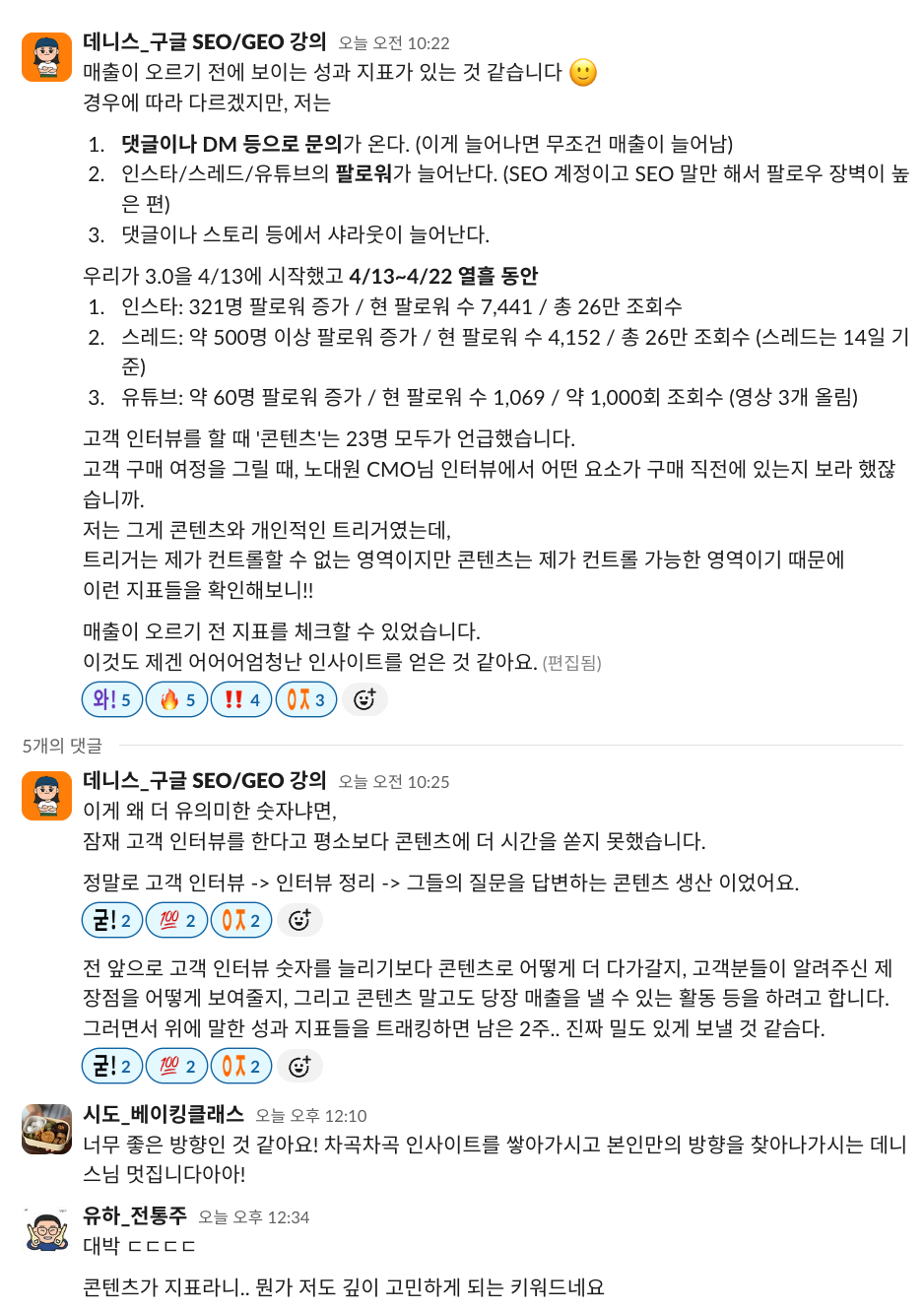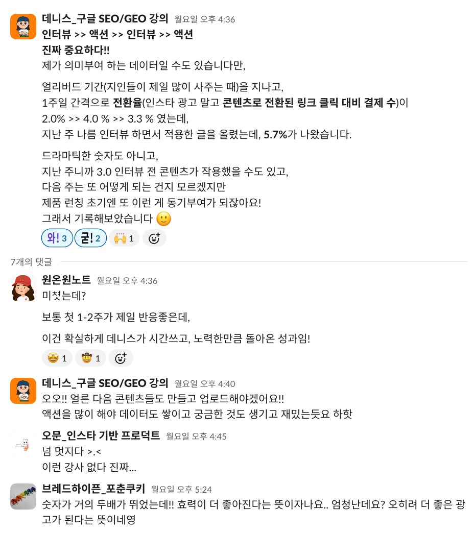 AI 검색 시대가 되면서 수많은 업체들이 우후죽순 생겨났는데, 그 사이에서 실제 데이터를 보여주고, 가감 없이 나누는 사람이라서 신뢰했다는 겁니다.