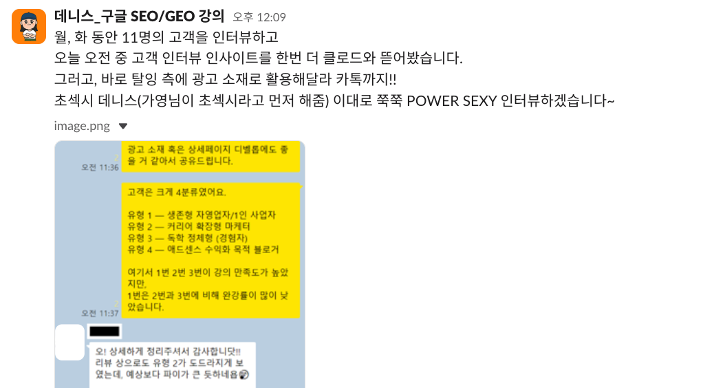 그런데 인터뷰를 통해 명확하게 니즈를 알게 되었고 'SEO를 배우고 싶어서 산다'에서 '절박해서, 불안해서, 나에 대한 신뢰 때문에 산다'로 고객 이해가 완전히 바뀌었습니다.