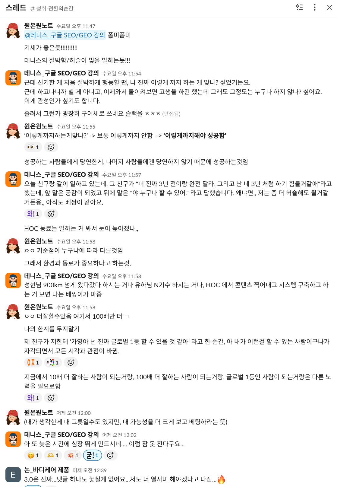 다른 SEO 강의도 듣고, 세미나도 다니고, 책도 읽은 사람. SEO를 처음 저에게 배운 분과는 달랐어요.