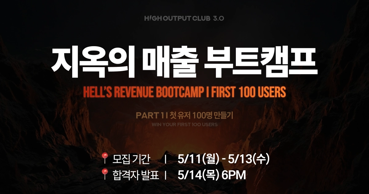이 이야기는 제가 하이아웃풋클럽 <지옥의 매출 부트캠프>에 참여하면서 겪은 이야기입니다.