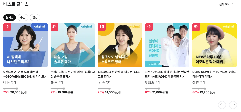 탈잉 실시간 1위.