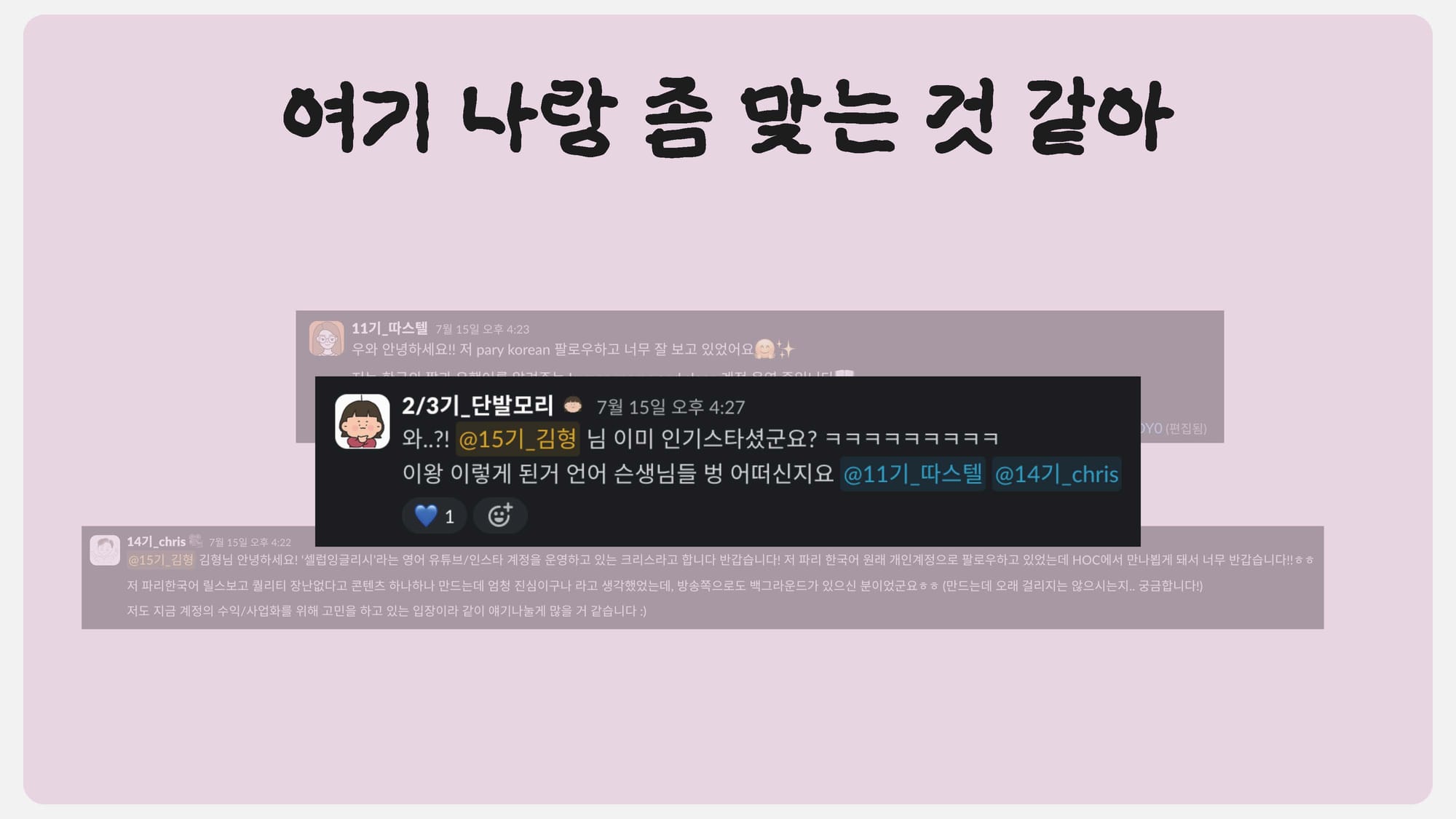 저도 실제로 같은 기수의 멤버분이 친구분을 추천해주셨고, 그 친구분이 또 다른 분을 추천해주면서 확장하고 있어요.