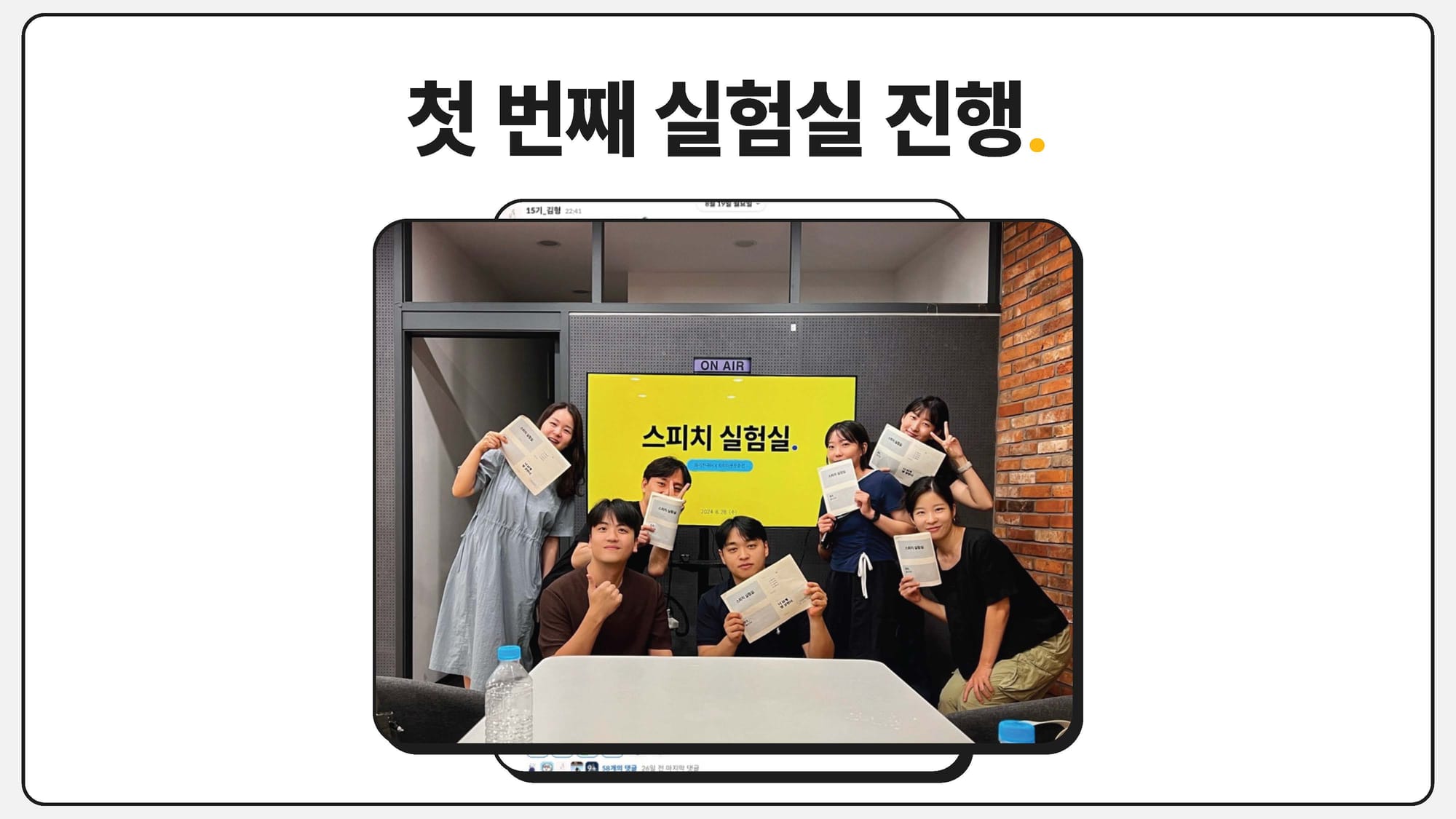 이후 멤버들이 김형님에게 계속 스피치 실험실이나 챌린지를 해보면 어떻겠냐고 제안했고, 같은 기수의 영끌님이 먼저 실험실을 연 것에 용기를 얻어 첫 실험실을 진행했습니다.