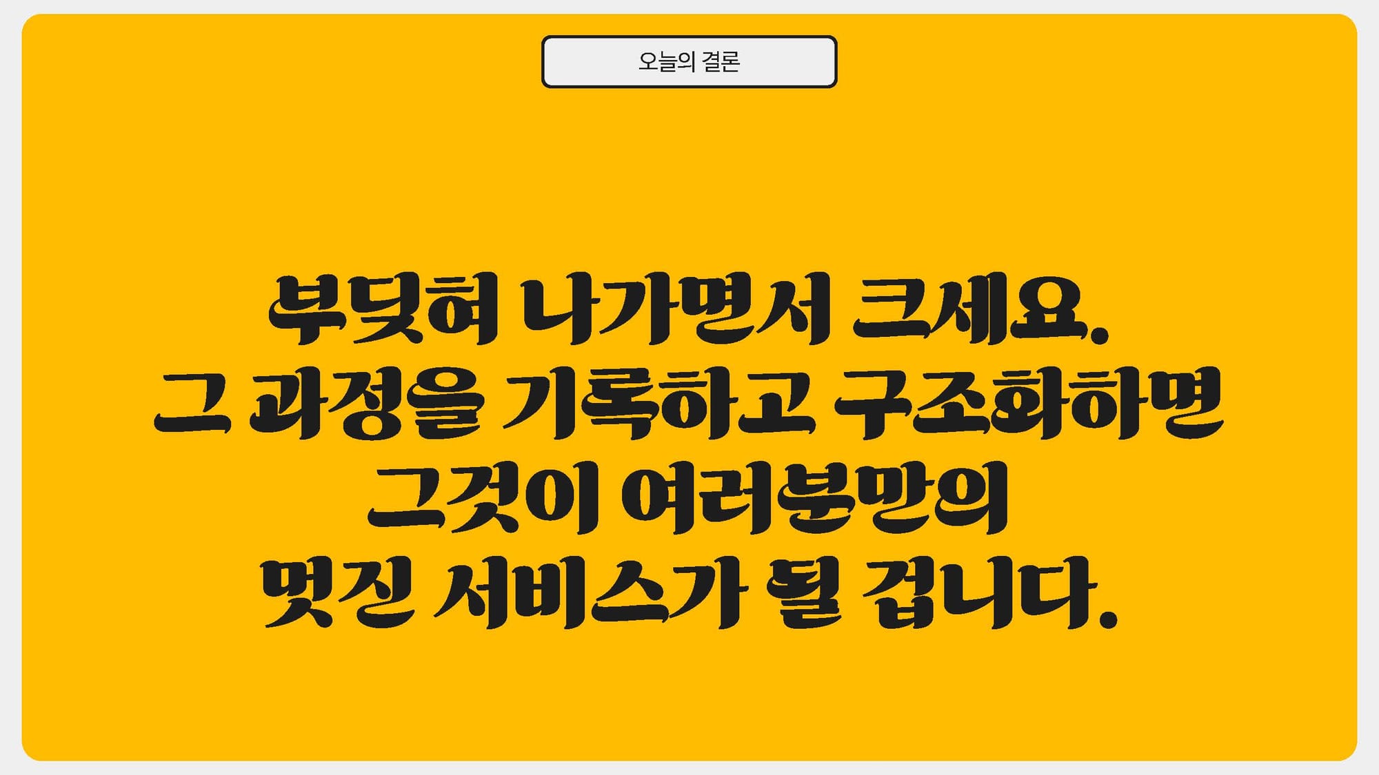 어떤 문제에 대한 해결책이 필요할 때 내가 생각나는 사람이 되는데 챌린지가 큰 힘이 됩니다. 그러니 어려움을 극복해서 내공을 쌓아 모두 잘 성장하면 좋겠습니다.
