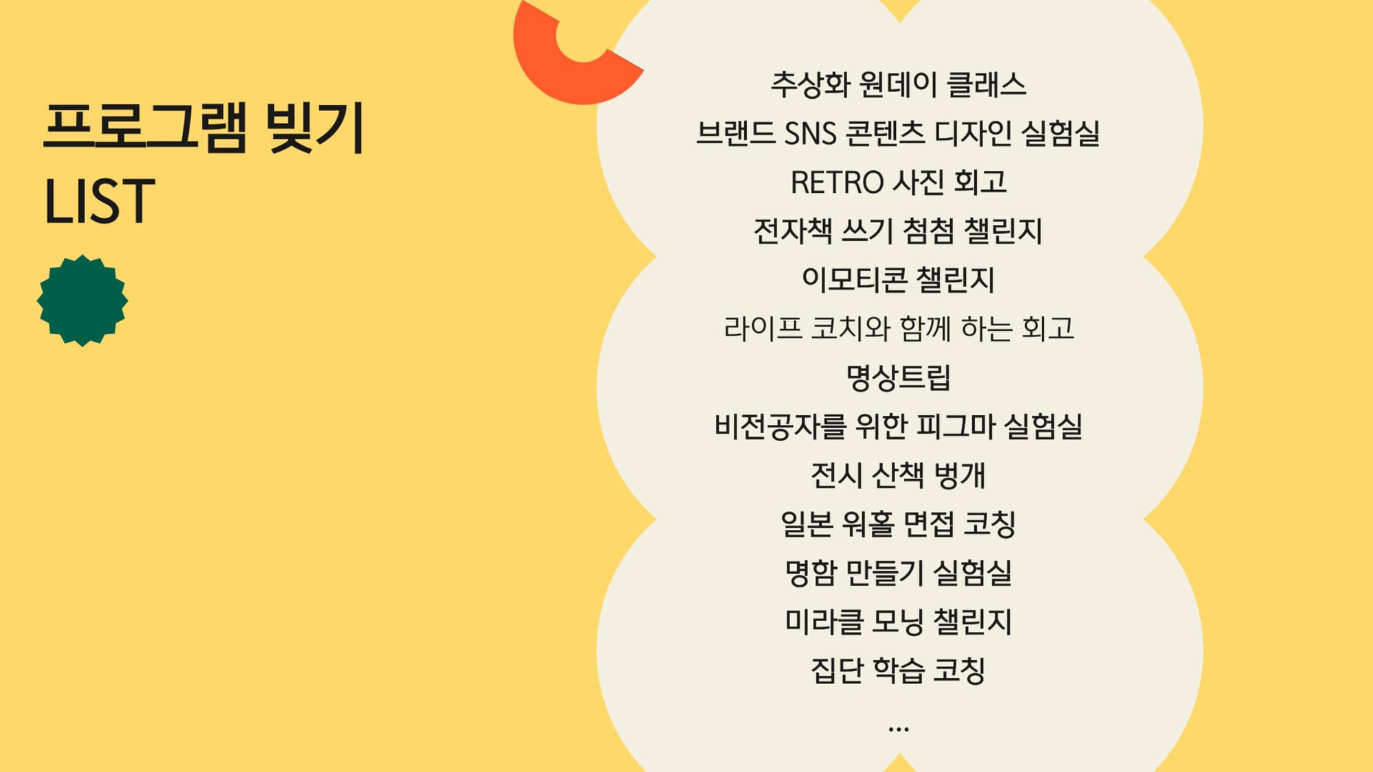 이를 혼자 하는 게 아니라 함께 했을 때 더 통통 튀는 피드백이 나와 아이디어가 발전할 것이라는 생각으로 처음 프로그램 빚기를 진행했습니다.