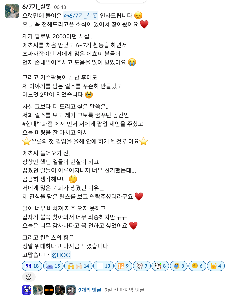 저에게 많은 기회가 생겼던 이유는 제 진심을 담은 릴스 덕분이었어요.