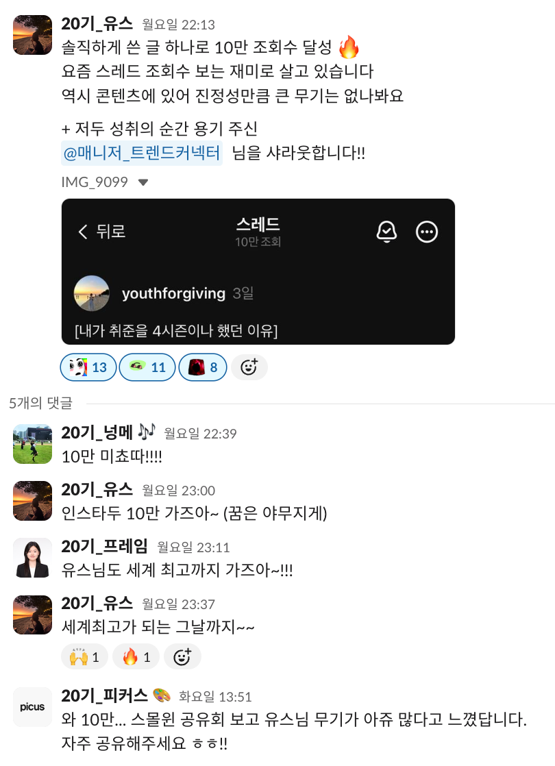 덕분에 7기 당시 200명이었던 인스타 채널이 11.8만으로 성장하고