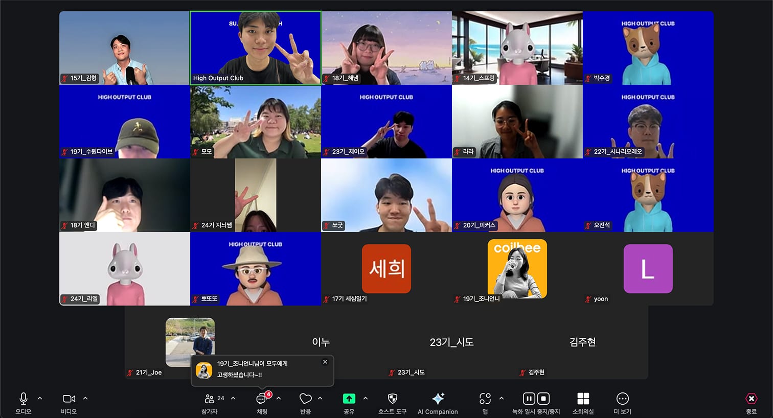 더 많은 분들이 하이아웃풋클럽의 환경에 들어와 밀도 높은 성장을 할 수 있도록 기존에 오프라인 중심으로 진행된 기수 프로그램을 온라인 중심으로 전환했습니다.