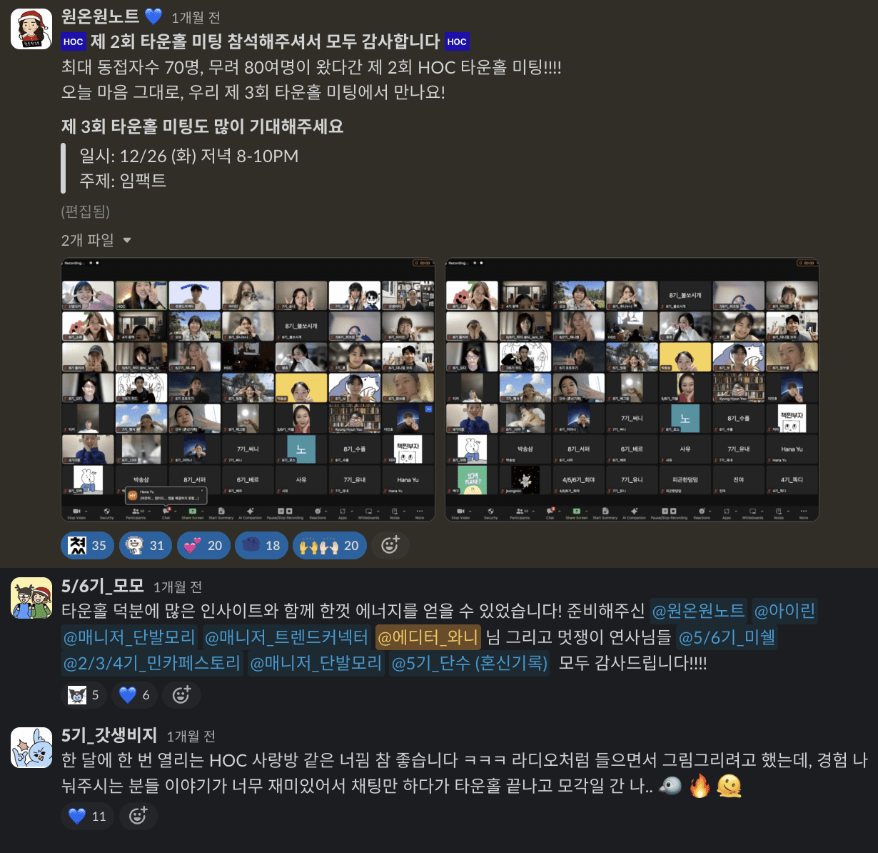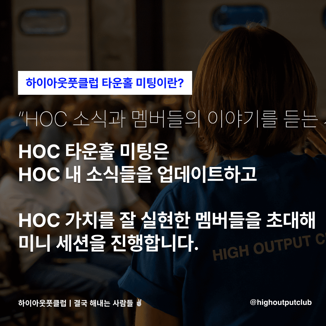 - 타운홀 미팅만 들어도, 하이아웃풋클럽 내에 주요 소식 및 공지사항 파악 가능