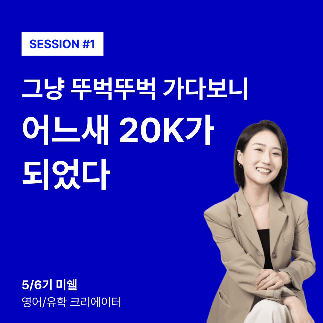 미쉘님은 하이아웃풋클럽 5기로 합류해, 6기의 성장팀 리더를 거쳐 비공식 7기까지 이어가며 인스타그램에서 팔로워 20k를 달성했어요.