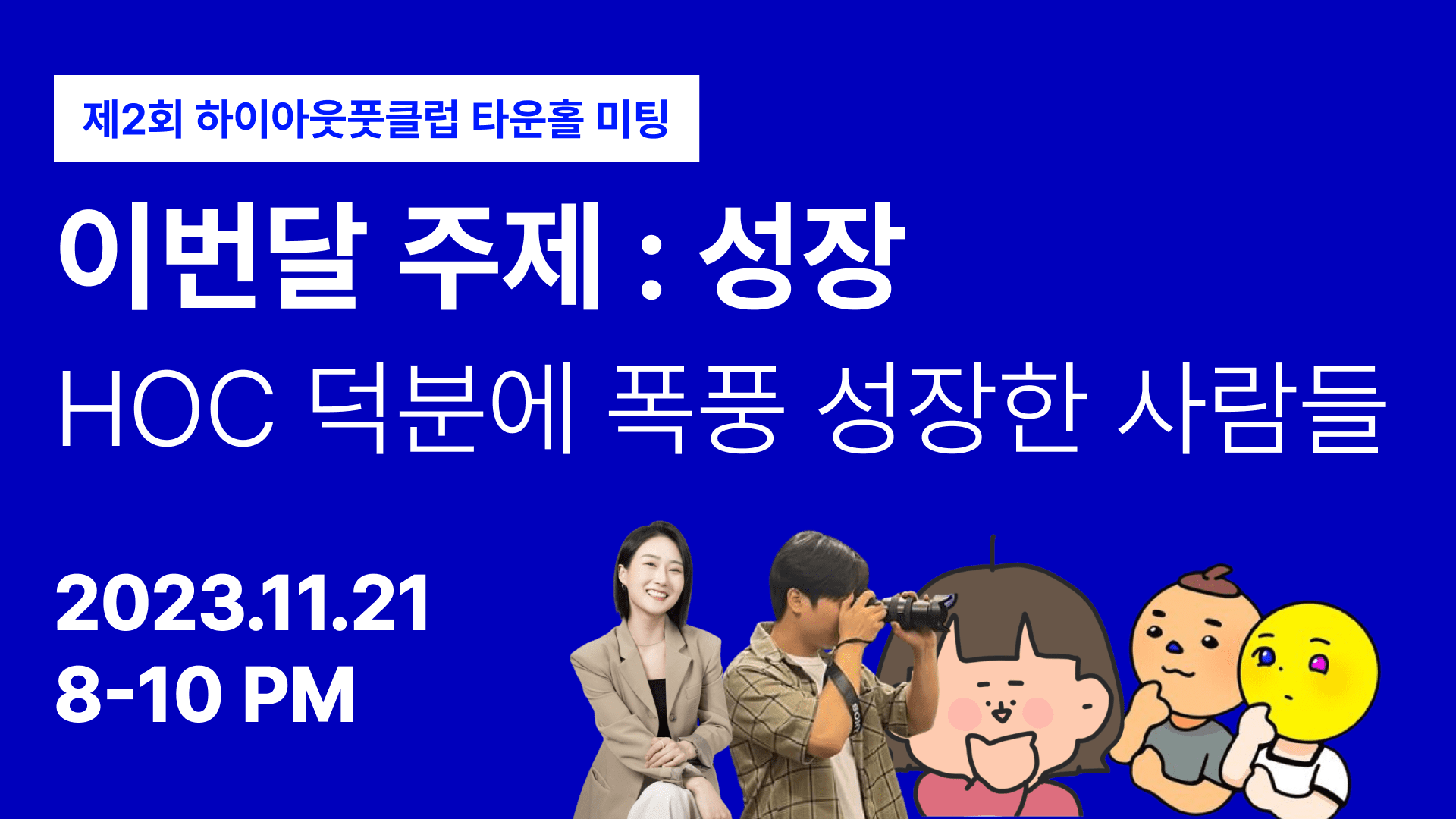 11월의 가치는 성장을 주제로 하이아웃풋클럽의 주요 소식과 레슨런을 공유하고 네 분의 연사를 모셔서 진행했습니다.