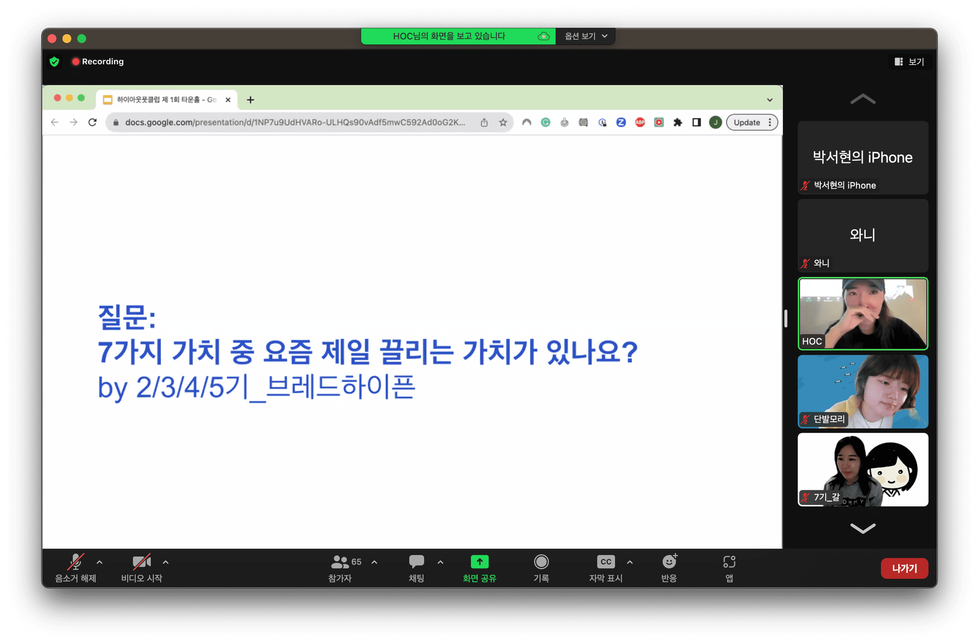 처음 진행된 1회 때는 하이아웃풋클럽의 주요 소식을 안내하고, 하이아웃풋클럽 최초의 플리마켓 기획기, 매출해커톤 기획 과정을 후기를 공유하고 회고하는 시간을 가졌습니다.