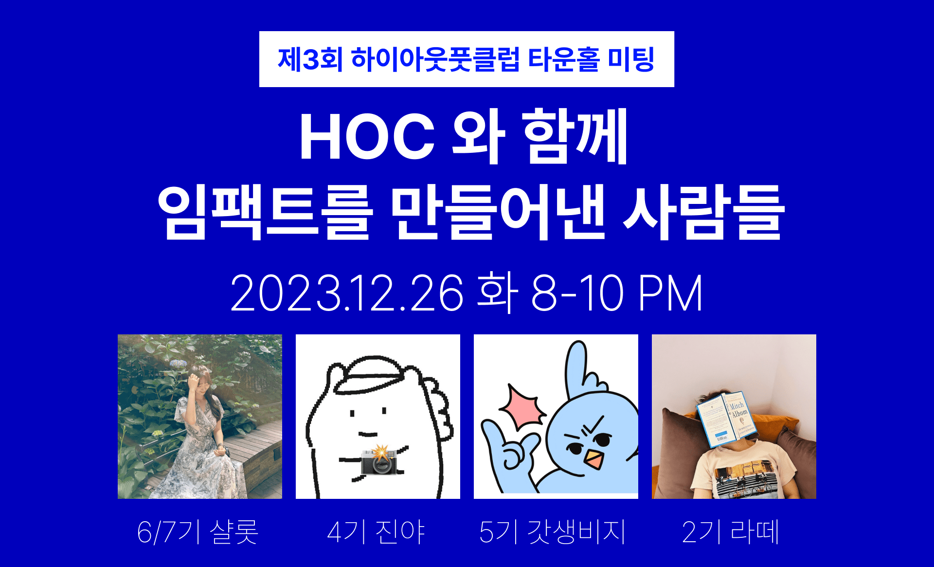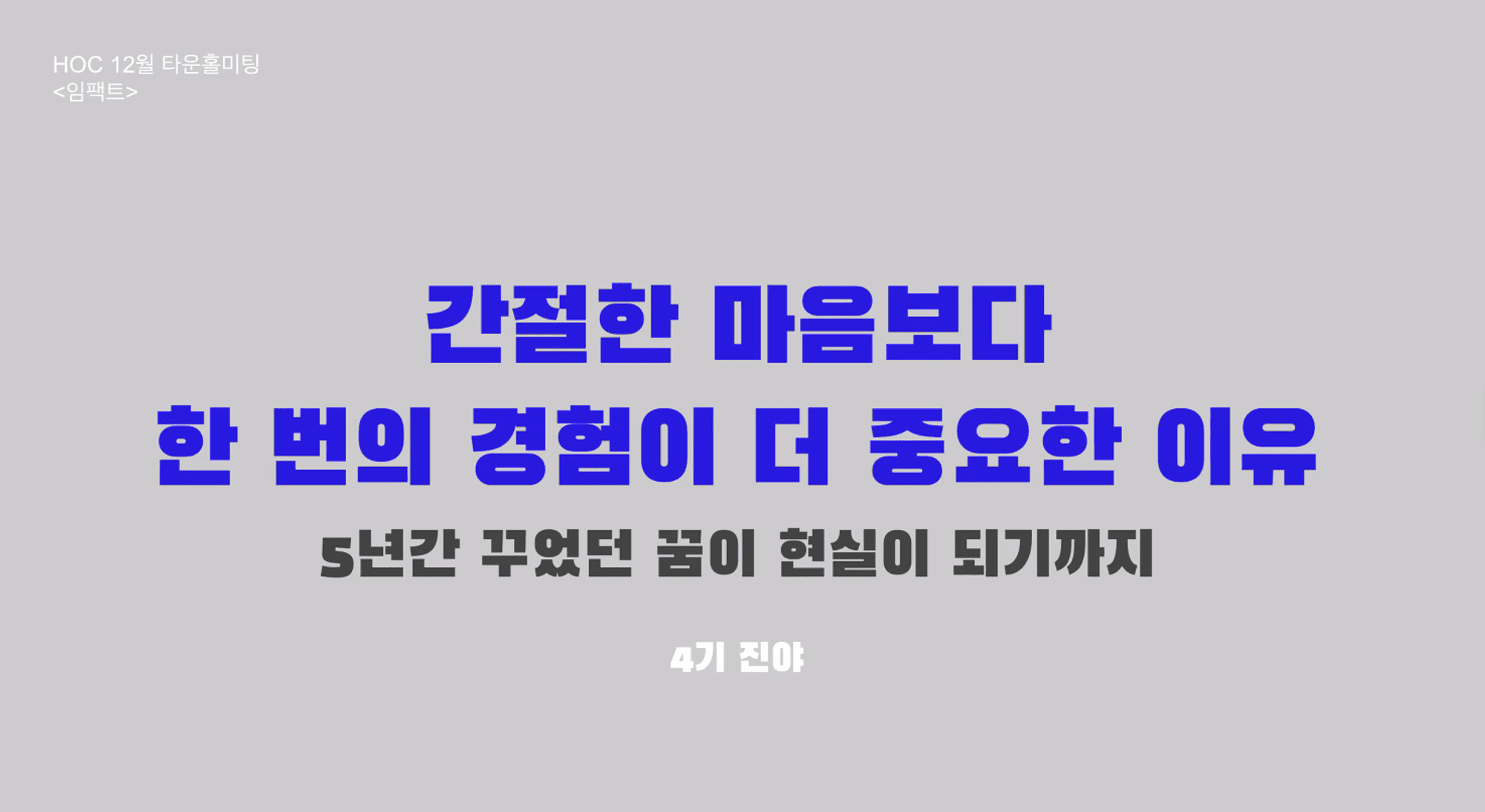 12월의 가치는 임팩트를 주제로 하이아웃풋클럽의 주요 소식을 공유하고 네 분의 연사를 모셔서 진행했습니다.