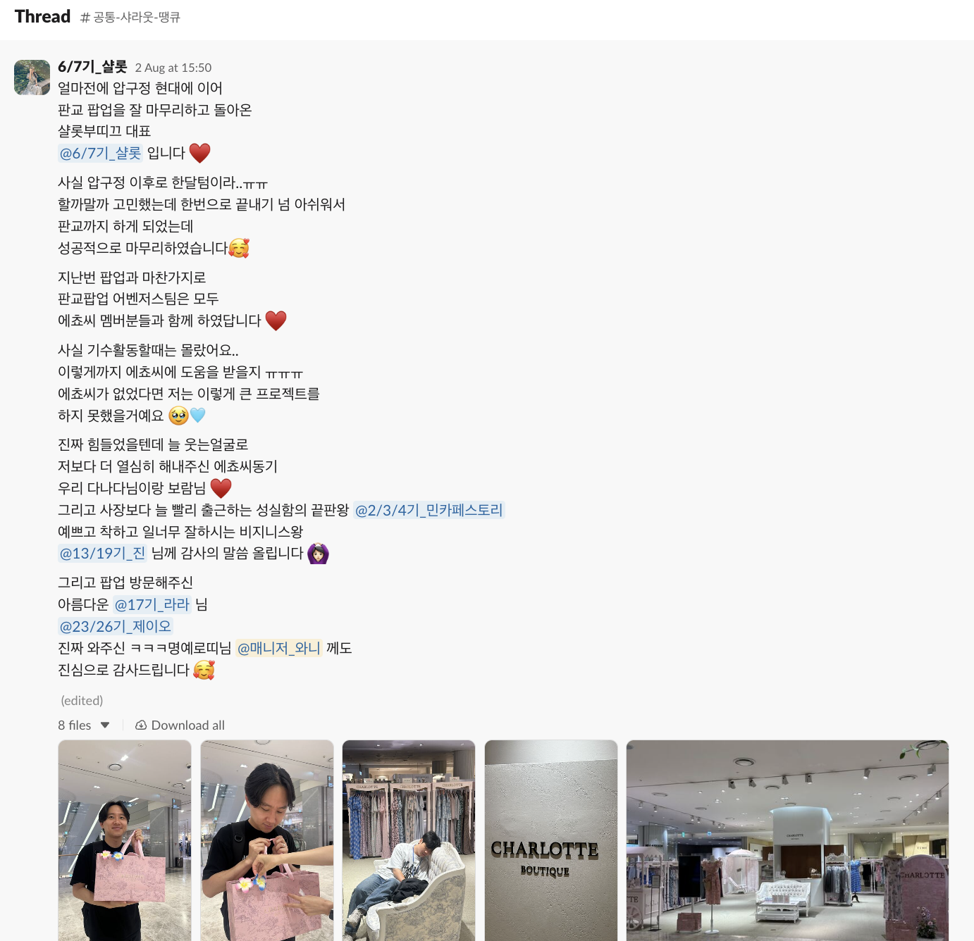 덕분에 압구정 팝업은 무사히 마무리되었고, 그 여세를 몰아 한 달 뒤엔 판교 현대백화점 팝업까지 이어가게 되었어요.