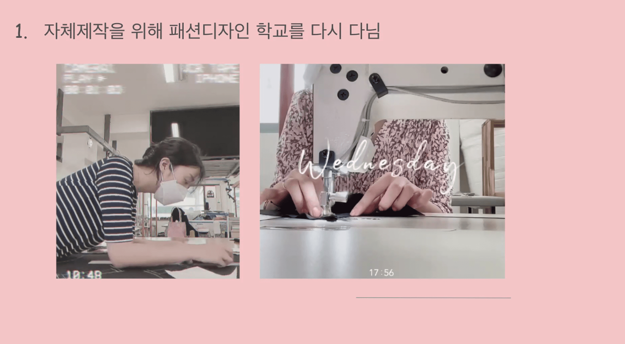 낮에는 일하고, 야간에는 서울시 패션학교에 등록해 패턴, 봉제, 생산까지 전 과정을 처음부터 배웠습니다.