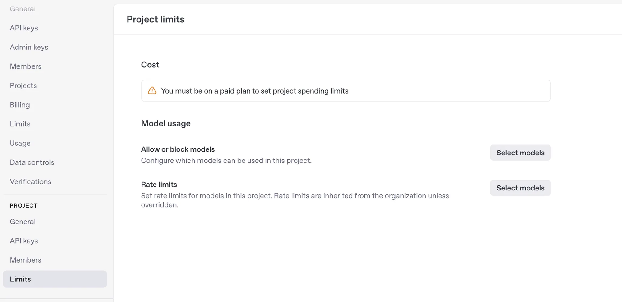 - Project - Limits - Cost에서 설정하실 수 있습니다.
