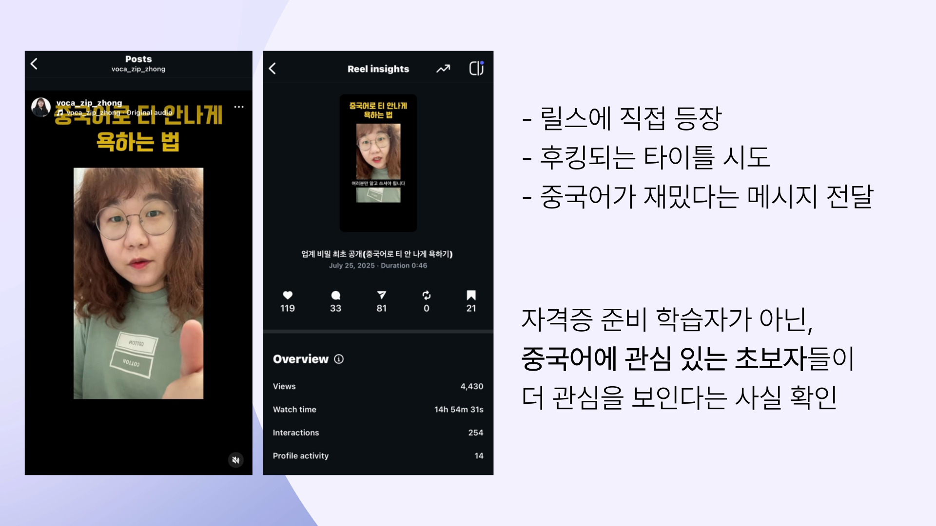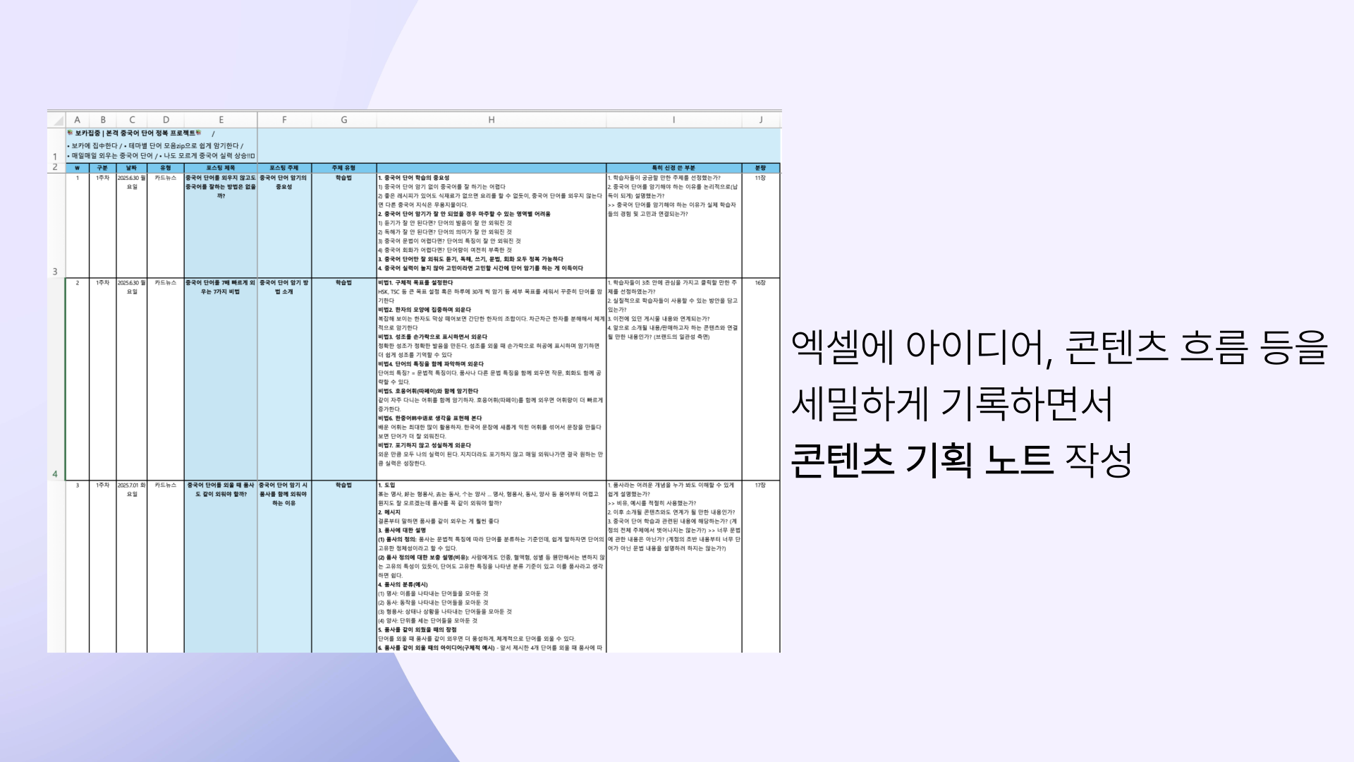 중국어를 공부하고자 하는 사람들은 많지만, 그 안에서도 어떤 학습자들이 제 콘텐츠를 더 필요로 할지를 한층 더 고민했습니다.