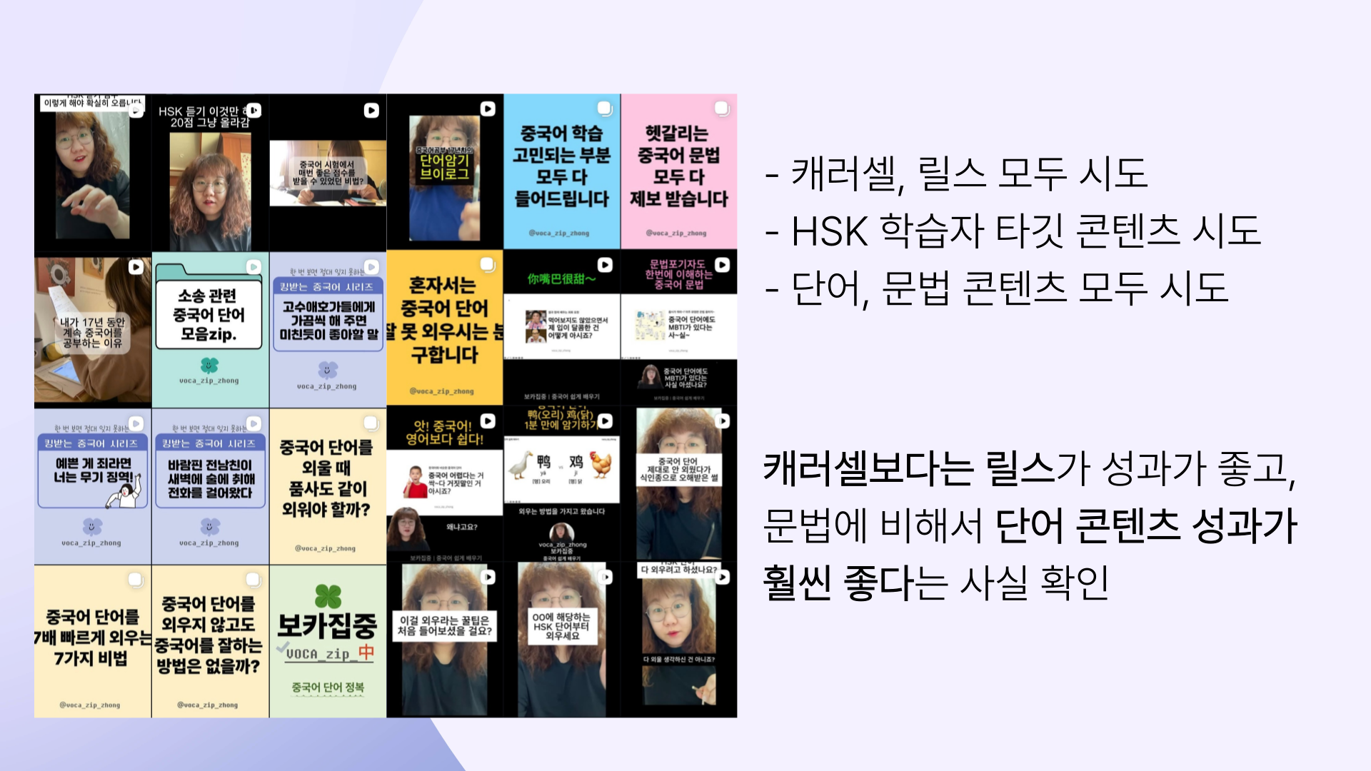 저도 초반에는 현재 보카집중(@voca_zip_zhong) 계정에서 보는 것과는 다소 다른 내용의 콘텐츠들도 많이 도전했었습니다.