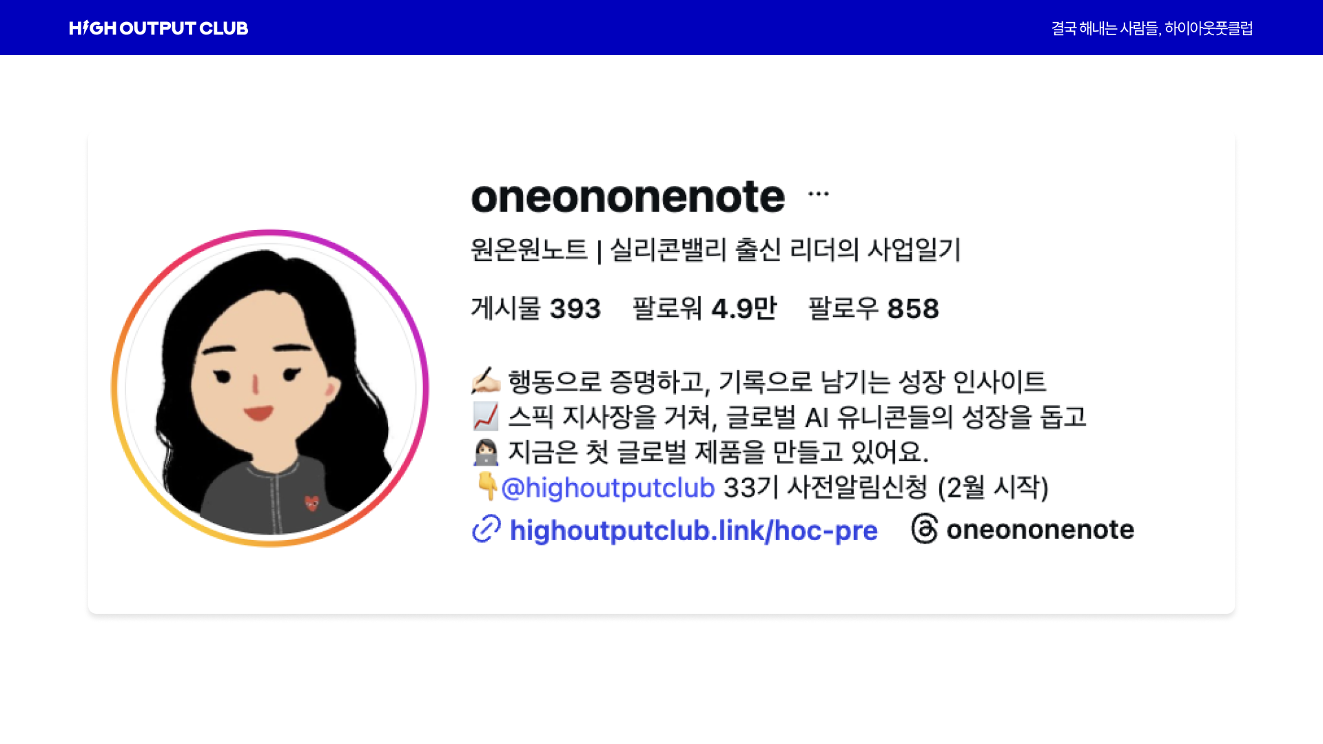 - 마지막에 "@highoutputclub 33기 사전알림신청"으로 명확한 CTA를 넣었죠.