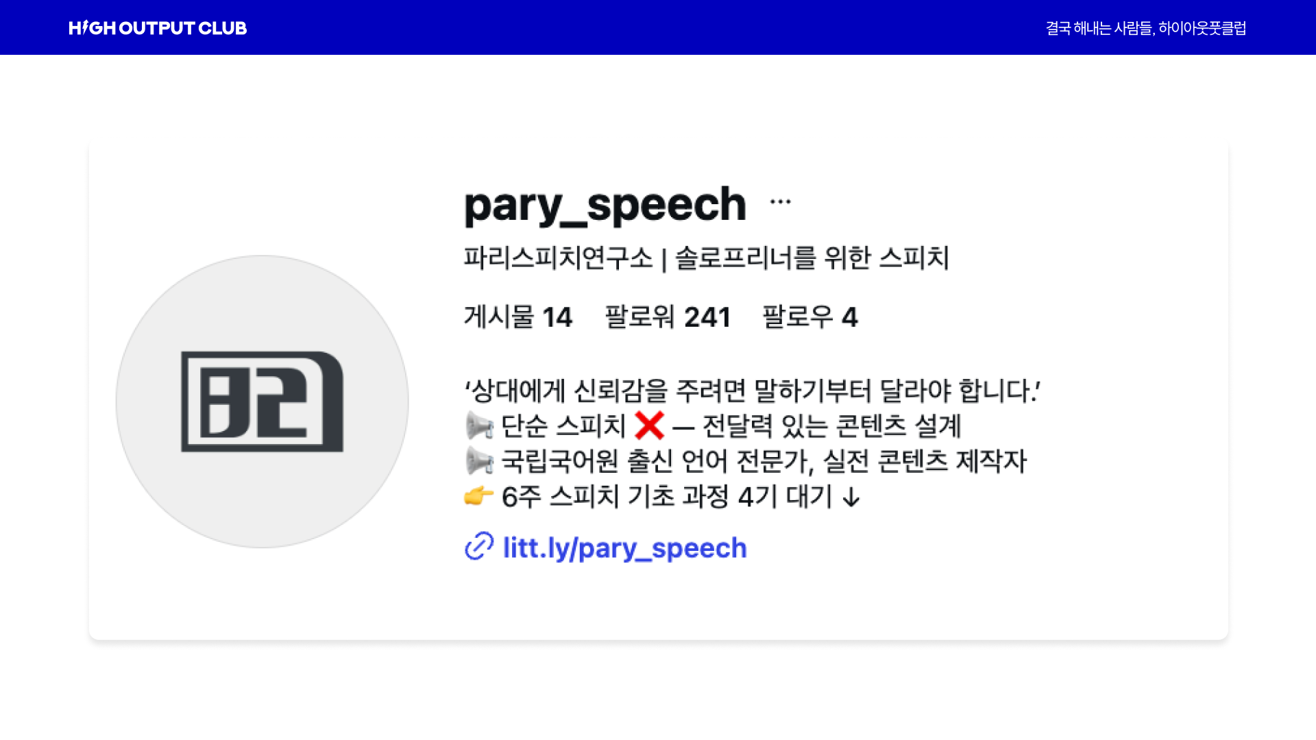 그래서 오늘은 하이아웃풋클럽 멤버들의 실제 사례를 바탕으로, 1인 사업가·프리랜서·브랜드 오너를 위해 팔로워 전환을 만드는 인스타 프로필 바이오 세팅법 A to Z를 핵심만 정리해보려고 합니다.