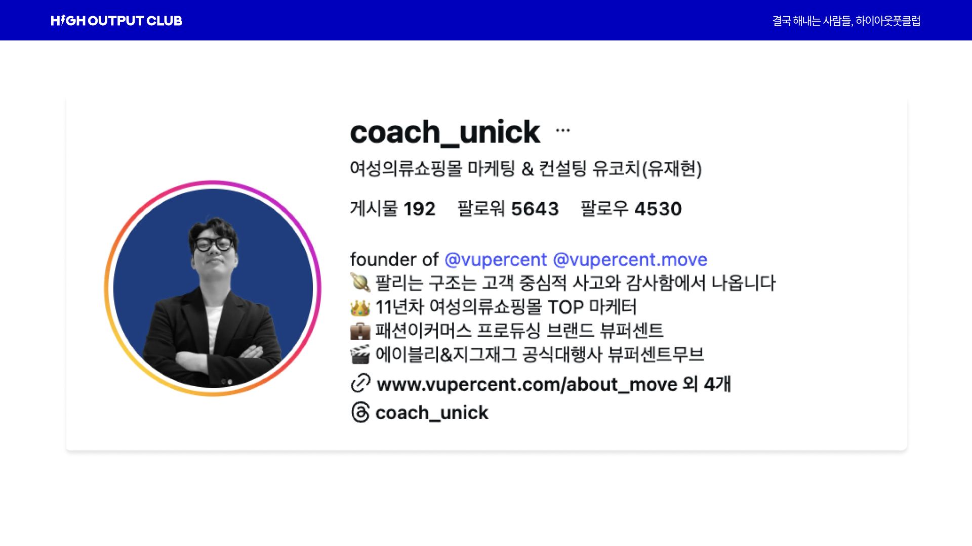 하이아웃풋클럽 멤버 민석님은 원래 인스타 프로필에 크게 신경 쓰는 스타일은 아니었습니다.