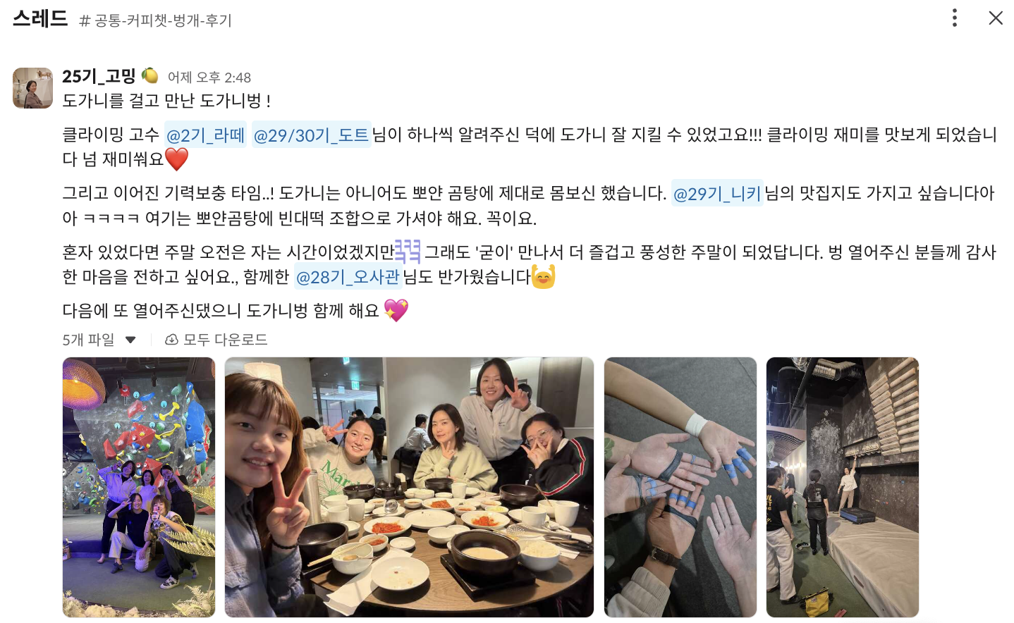 같은 기수들도 각자의 루틴과 포맷을 만들어가며 변화하는 모습을 보며, "나도 할 수 있다"는 확신을 얻었어요.