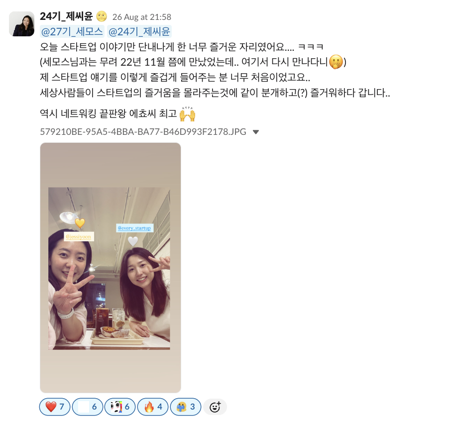 대표는 어디서나 고독하기 마련인데, 나와 비슷한 에너지 레벨의 사람들이 함께 모여 시너지를 내는 경험은 정말 소중합니다.