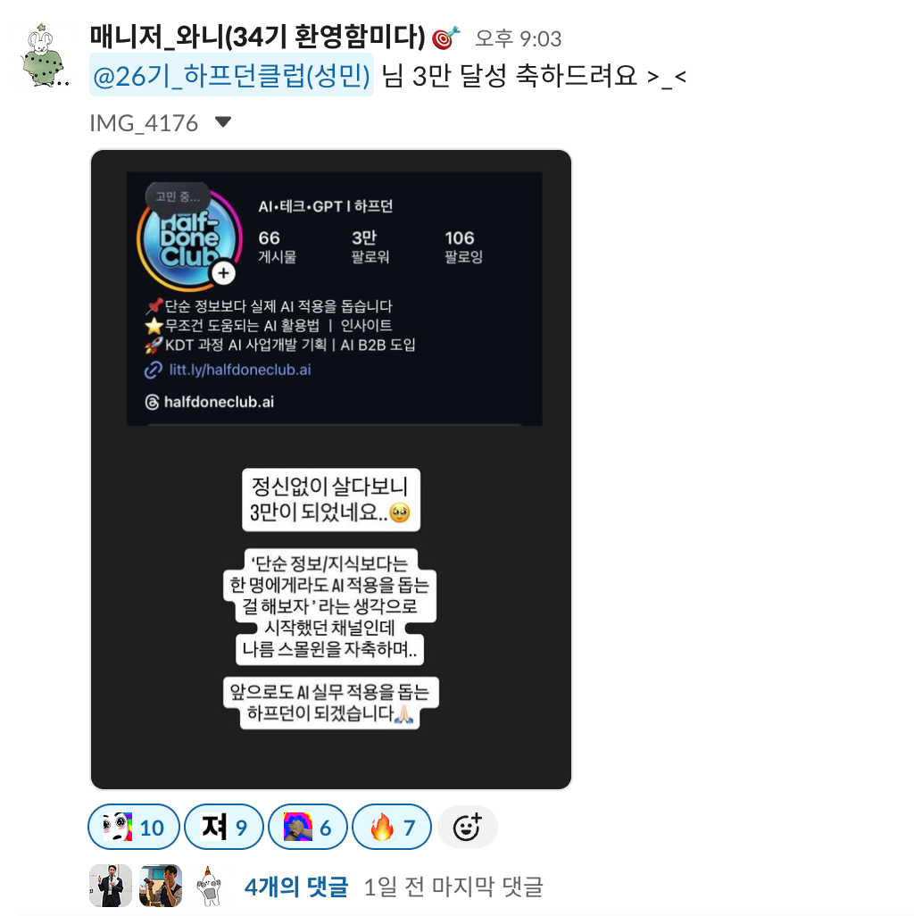 저는 앞으로도 하프던클럽을 통해 AI 교육의 방식을 바꿔가고 싶어요.